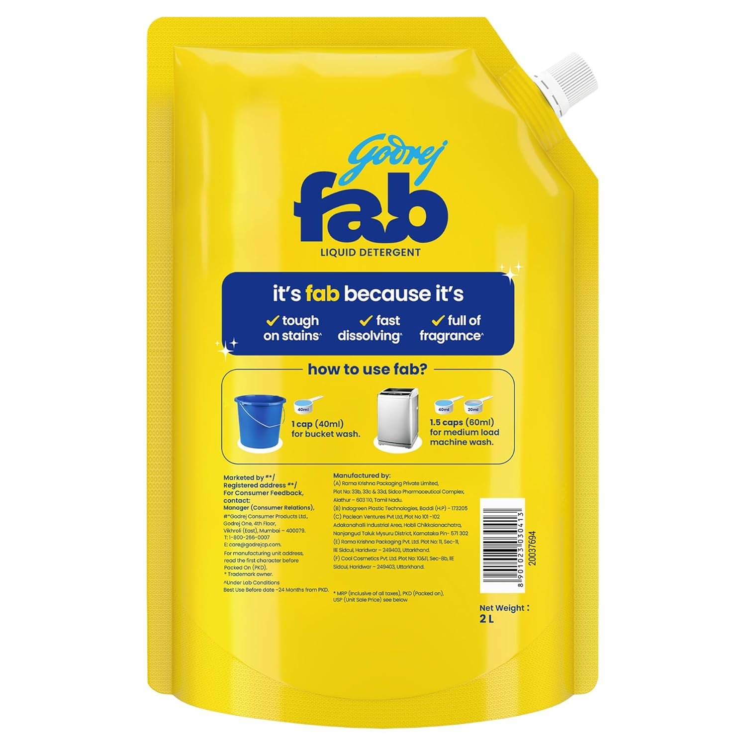 Contains: 1 Refill of Godrej fab washing machine liquid (2L)