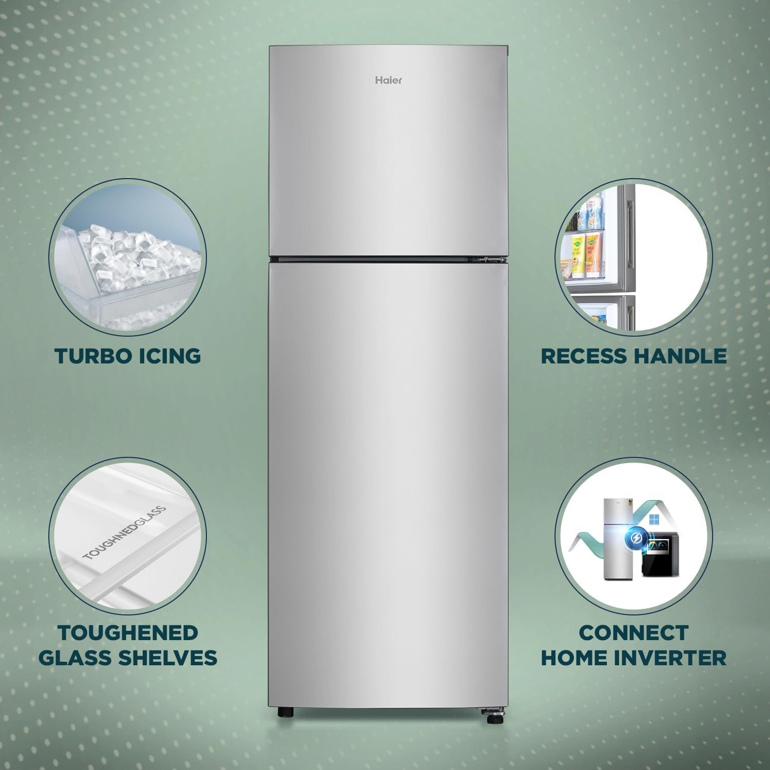 Additional Features : Stabilizer Free Operation (110v – 300v) | Multi Air Flow | Recess Handle | Large Veg Box | Auto connect to Home Inverter | Big Bottle Guard (Deep Door Guard) | LED Light | Easy Clean Back
