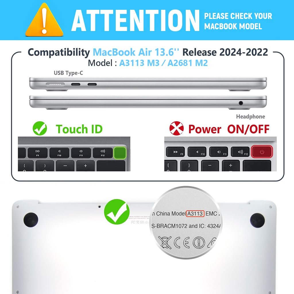 PERFECT COMPATIBILITY: Exclusively designed for the 13.6 inch MacBook Air (ONLY M4 A3240 M3 A3113 M2 A2681; released 2025 2024 2022), MacBook Air cover seamlessly molds to your laptop like a second skin, precision-engineered design allows full access to all ports, delivering a safe and comfortable fit.Before purchasing, please check the model number on the back of the computer