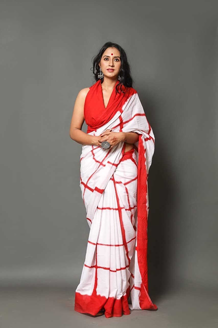 HASTSHILPI Mulmul Cotton White Saree For Women’s And Girls Beautiful Block Printed Work Traditional Ethnic Indian Wear Saree With Blouse Piece For All Occasions Saree A Greet Gift Itm