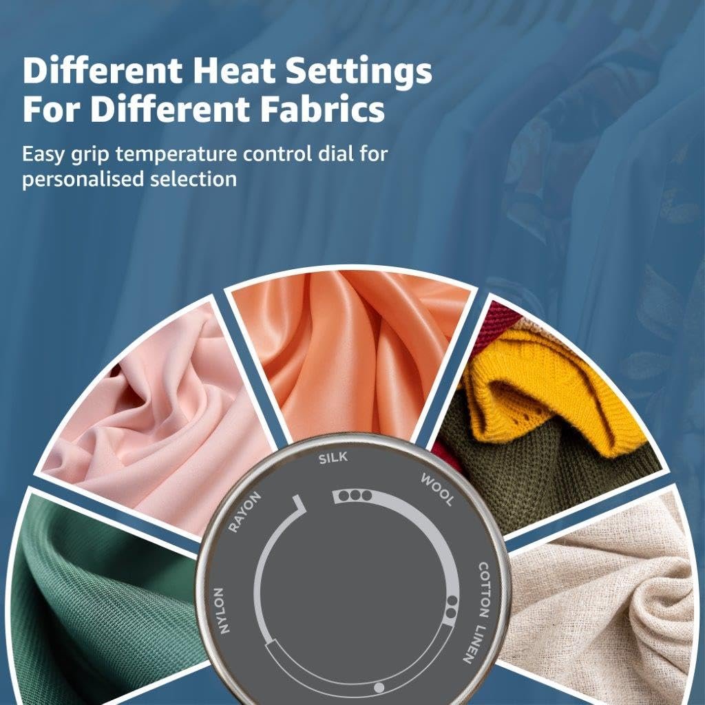 Temperature Control Dial for All Fabrics- Adjustable knob allows precise control for different fabric types like cotton, silk, wool, and more—ensures safe and effective ironing.