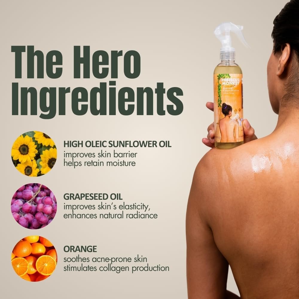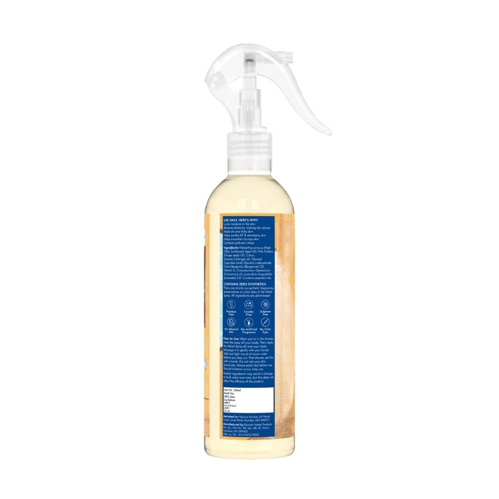 HIBISCUS MONKEY Velvet Spray Orange In-Shower Body Moisturizer | Soothe Dry Itchy Skin, Enhance Natural Glow, Reduce Sun Damage | Natural, Chemical Free| 250Ml