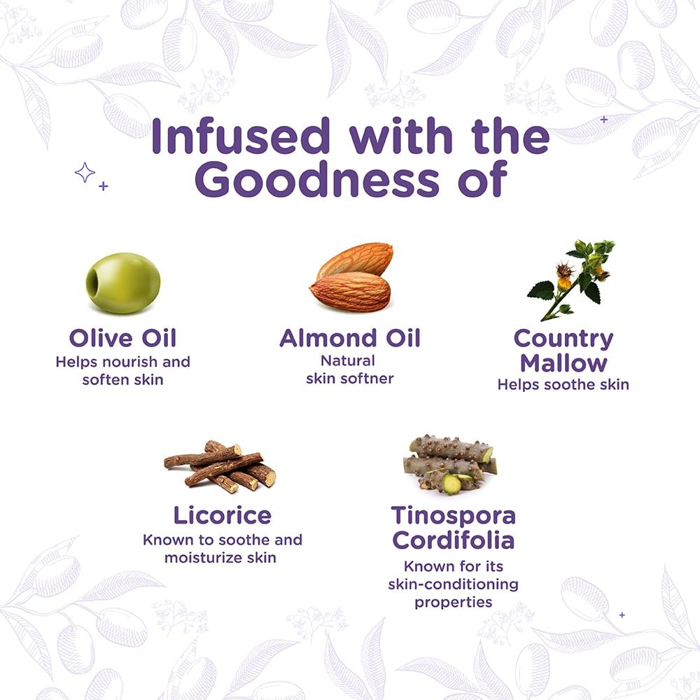 Vitamin E enriched Olive oil, nourishes the skin and prevents any outbursts while, Almond oil a rich source of Vitamin A.