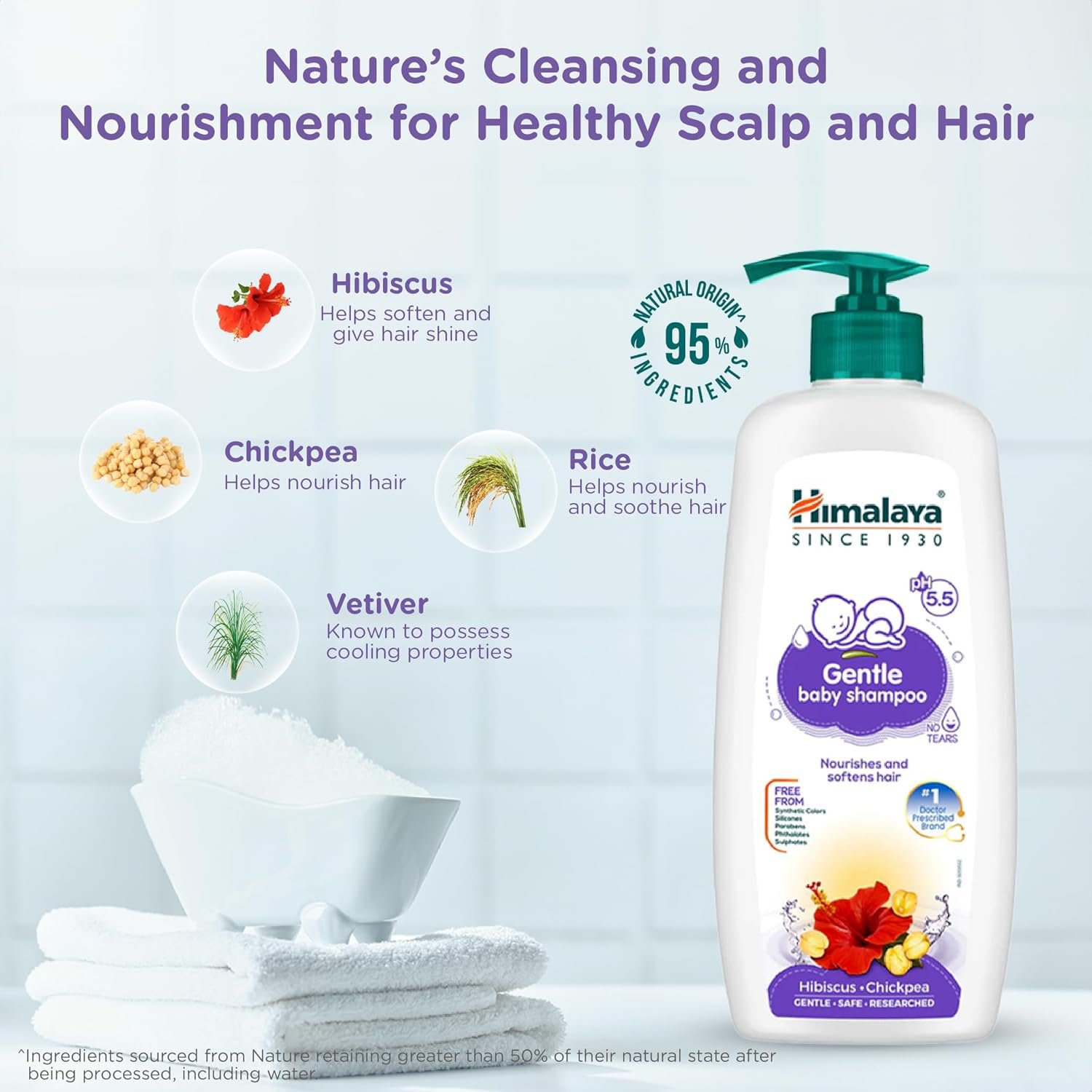 Himalaya Gentle Baby Shampoo is a mild, “no tears” shampoo that gently cleanses hair making it soft, shiny, and easy to manage. It softens, nourishes and improves your baby’s hair lustre, leaving it soft and fresh. This gentle baby shampoo is formulated to cleanse and strengthen your little one’s hair without any teary-eyed blues. It is so gentle that your tot is definitely going to love it. Himalaya shampoo is in essence a natural shampoo containing no harsh chemicals. It boasts anti-inflammatory and soothing properties to protect and care for your baby’s tender scalp. All in all, it is an essential baby care product that helps you get rid of dirt and other harmful infectious particles from your child’s scalp, without damaging it. The mild and soft Himalaya herbal shampoo moisturises and nourishes your baby’s hair improving its texture. Its core ingredients include chickpea, hibiscus and khus khus. The protein-rich chickpea leaves the hair strong and shiny, while hibiscus acts as a natural conditioner to make it soft and smooth. Khus-khus soothes the baby’s scalp, with its antibacterial and antifungal properties. These natural ingredients make Himalaya baby care shampoo perfectly safe for daily use. It cleanses, disinfects and leaves behind a mild scent and lustre with its ideal pH balance. Easy to use, just apply this Himalaya Gentle Baby Shampoo, lather and rinse well to get those shiny baby locks instantly.