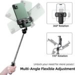 Selfie Stick Tripod With Wireless Remote :- 2-in-1 selfie stick tripod with built-in wireless remote allows you take selfie-photography or you can separate the remote control to take group photos like parties, graduation, wedding, travel. You can use it as a regular selfie stick or as a quick and easy tripod. **Note**: Under tripod mode, the center of gravity of cellphone must be kept in line with the selfie stick. The lower the height of extendable rod, the better the stability.