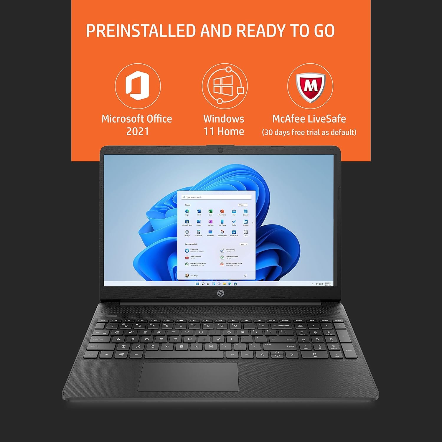 Operating System & Preinstalled Software: Windows 11 Home 64 Plus Single Language | Microsoft Office Home & Student 2021| McAfee LiveSafe (30 days free trial as default) |