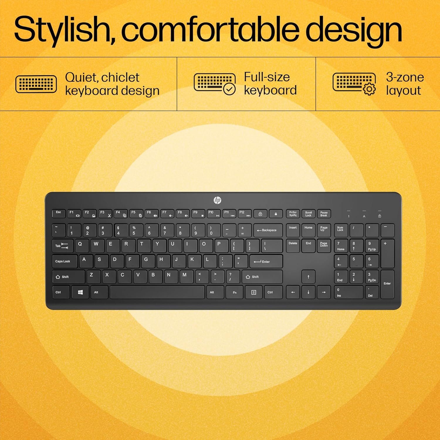 The chiclet keyboard design lets you enjoy comfortable, more accurate typing with less noise.