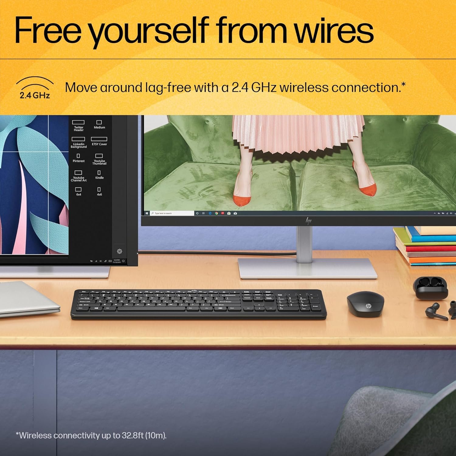 Wireless connectivity up to 32.8ft (10m).