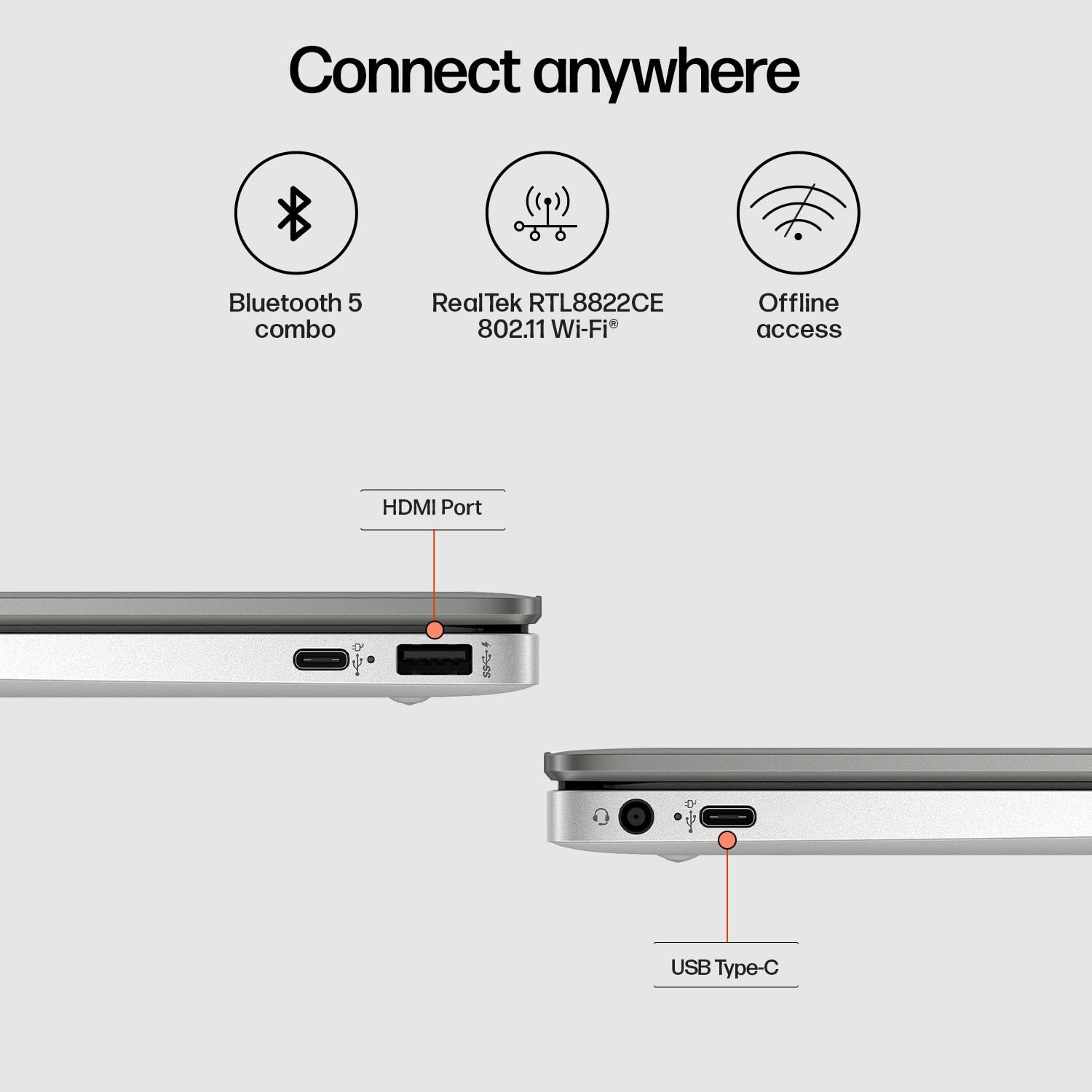 Display: 35.6 cm (14″) diagonal, HD touch, micro-edge, BrightView, 220 nits, 1366 x 768, 45% NTSC| Graphics: Intel UHD Graphics |Networking: Realtek RTL8822CE 802.11a/b/g/n/ac Wi-Fi and Bluetooth 5 combo (Supporting Gigabit data rate) MU-MIMO supported