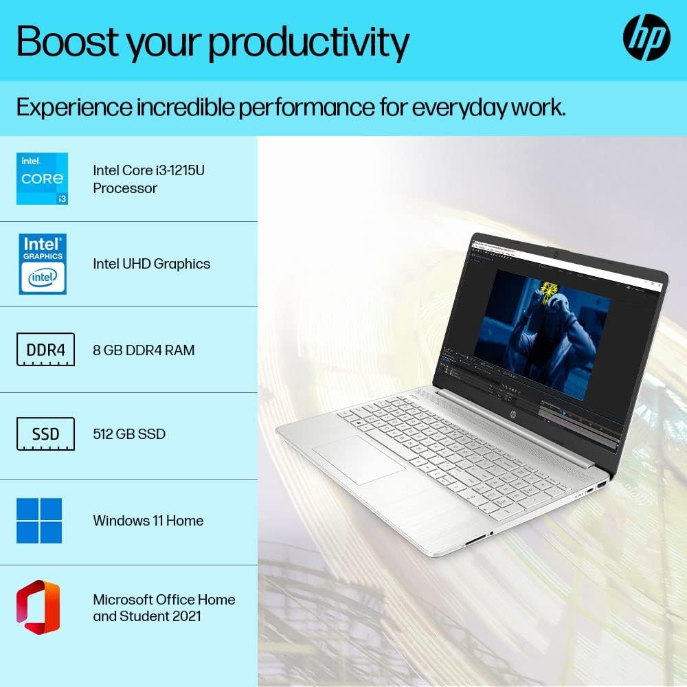 Processor: Intel Core i3-1215U (up to 4.4 GHz with Intel Turbo Boost Technology, 10 MB L3 cache, 6 cores, 8 threads)| Memory: 8 GB DDR4-3200 MHz RAM (1 x 8 GB)| Storage: 512 GB PCIe NVMe M.2 SSD