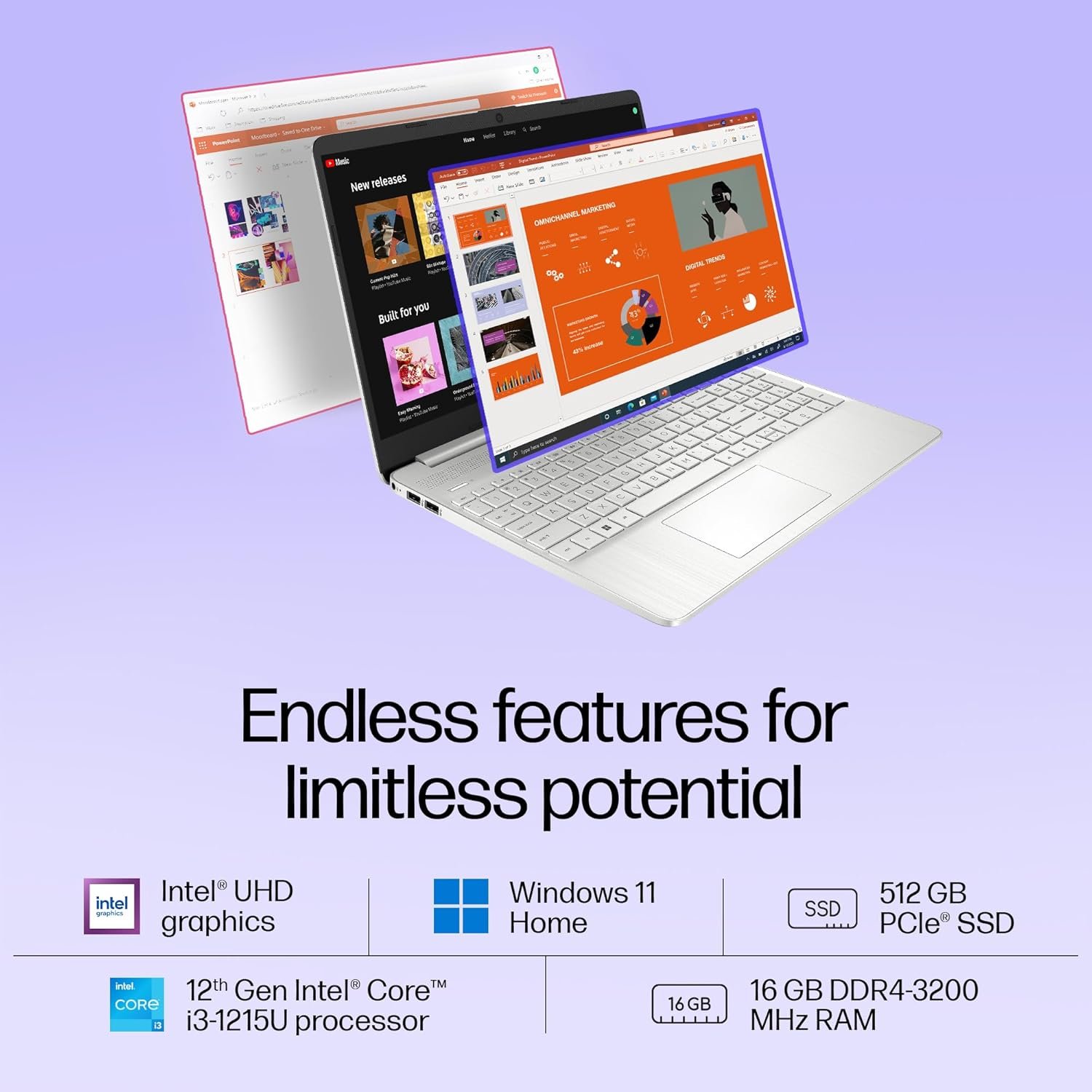 【6-core 12th Gen Intel Core i3-1215U】8 threads and 10MB L3 cache deliver fast processing speeds and instant responsiveness. The Intel UHD graphics help you dive into crisp, stunning visuals.