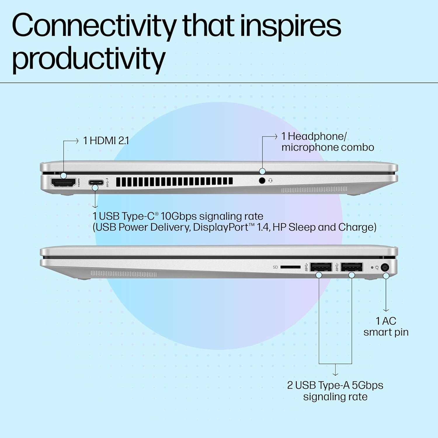 Other Features: Webcam: HP True Vision 5MP camera with temporal noise reduction and integrated dual array digital microphones|Networking: Intel Wi-Fi 6 AX211 (2×2) and Bluetooth 5.3 wireless card| Battery: 3-cell, 43 Wh Li-ion; Support battery fast charge|Keybaord: Full-size, backlit, natural silver keyboard