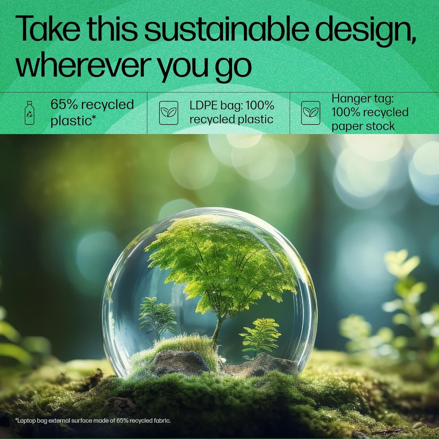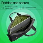 Commute with a stylish and durable laptop bag thoughtfully designed with the environment in mind and made with recycled fabric[1] The new HP Prelude Pro 15.6″ Laptop Bag with internal olive lining color comes with safety features for your peace of mind when you carry your devices from work to home and beyond.