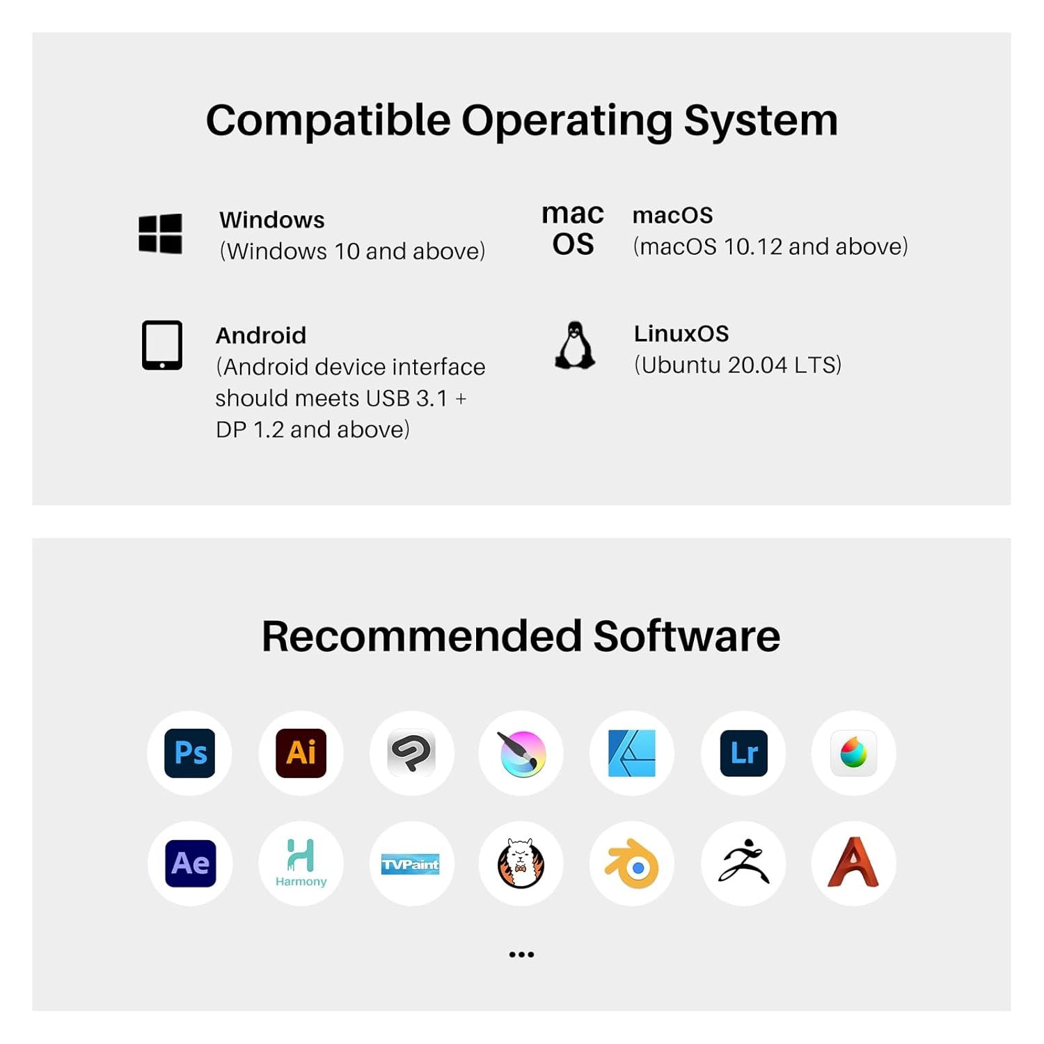 Strong Compatibility: Kamvas 13 (Gen 3) pen display supports a variety of mainstream software. It is compatible with Windows 10 or later, Mac OS 10.12 or later, Android devices that support USB3.1 GEN1 and DP1.2, and Linux OS(Ubuntu 20.04 LTS).
