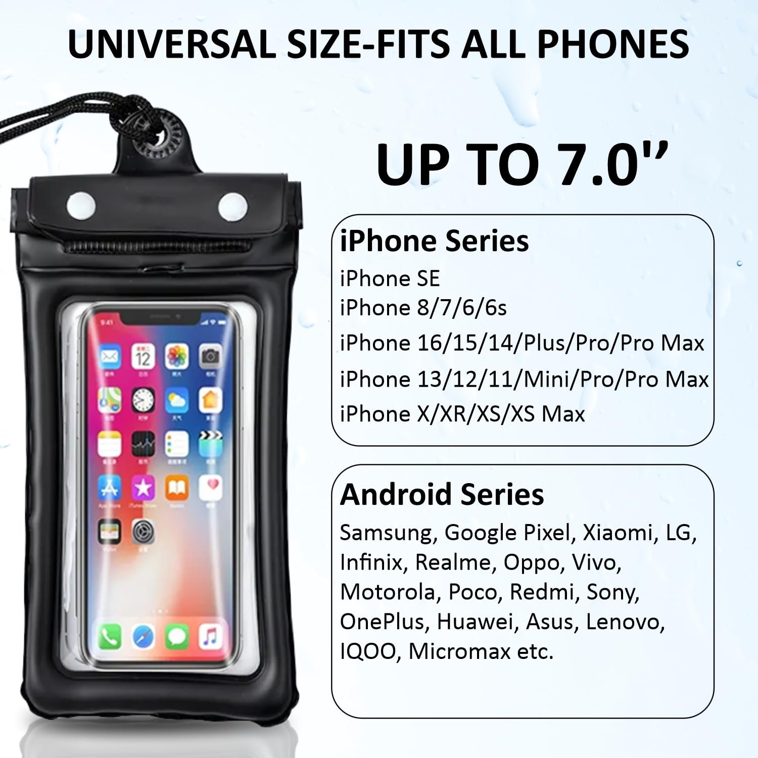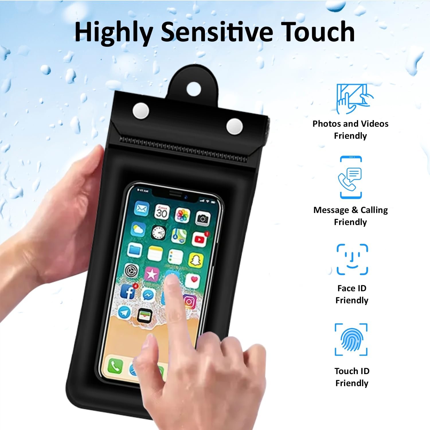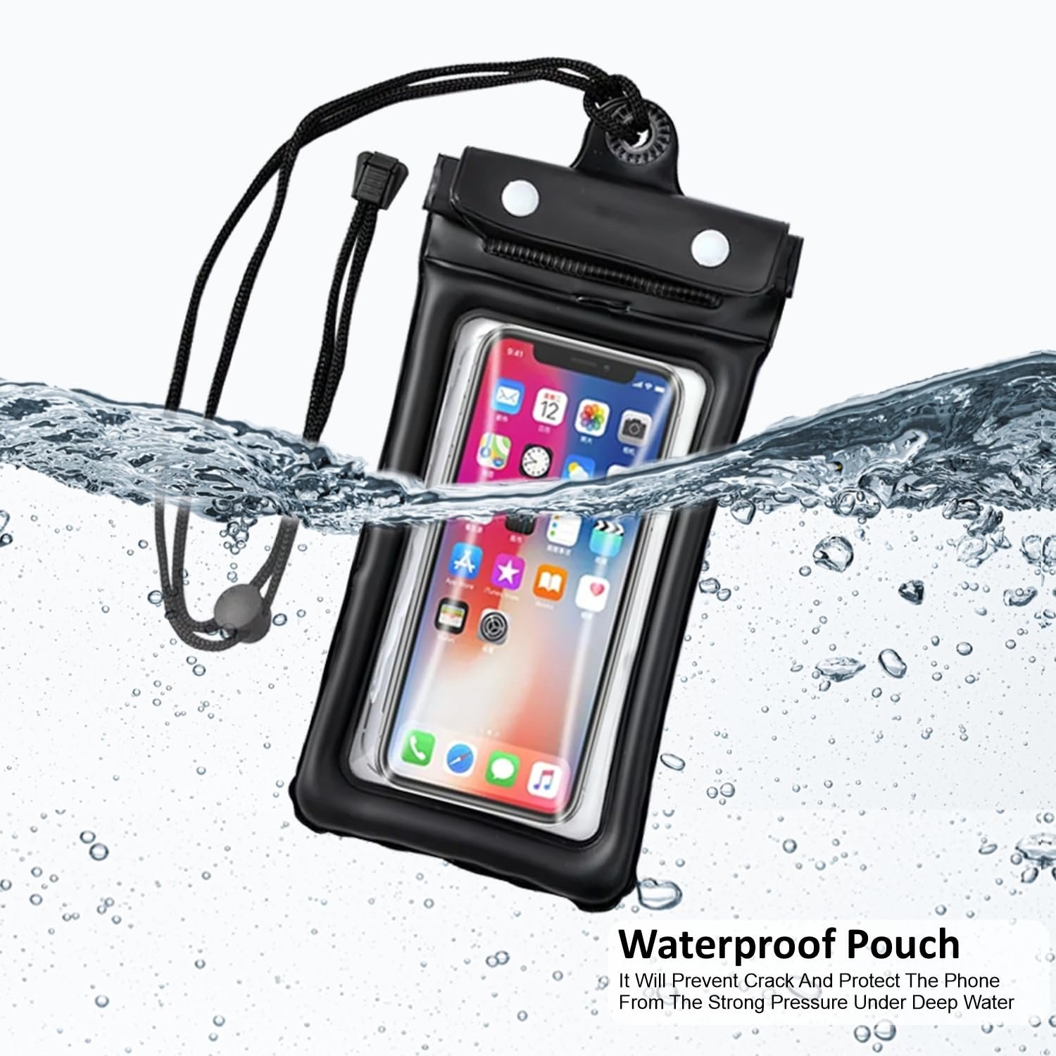 Touchscreen-Compatible with HD Clarity: The crystal-clear, touchscreen-sensitive design allows you to use your phone without removing it from the pouch. Take photos, record videos, make calls, or send messages—without sacrificing functionality. The HD material ensures excellent display quality and camera clarity, perfect for underwater photography. Please Note- Touch Screen might not work after certain depth, hence, please use side button of your phone to click photos.