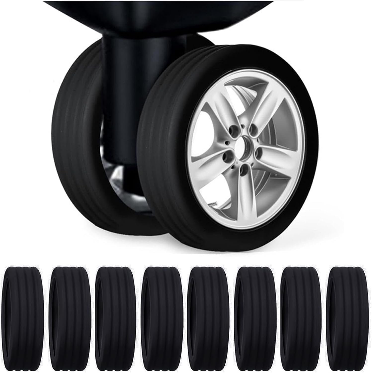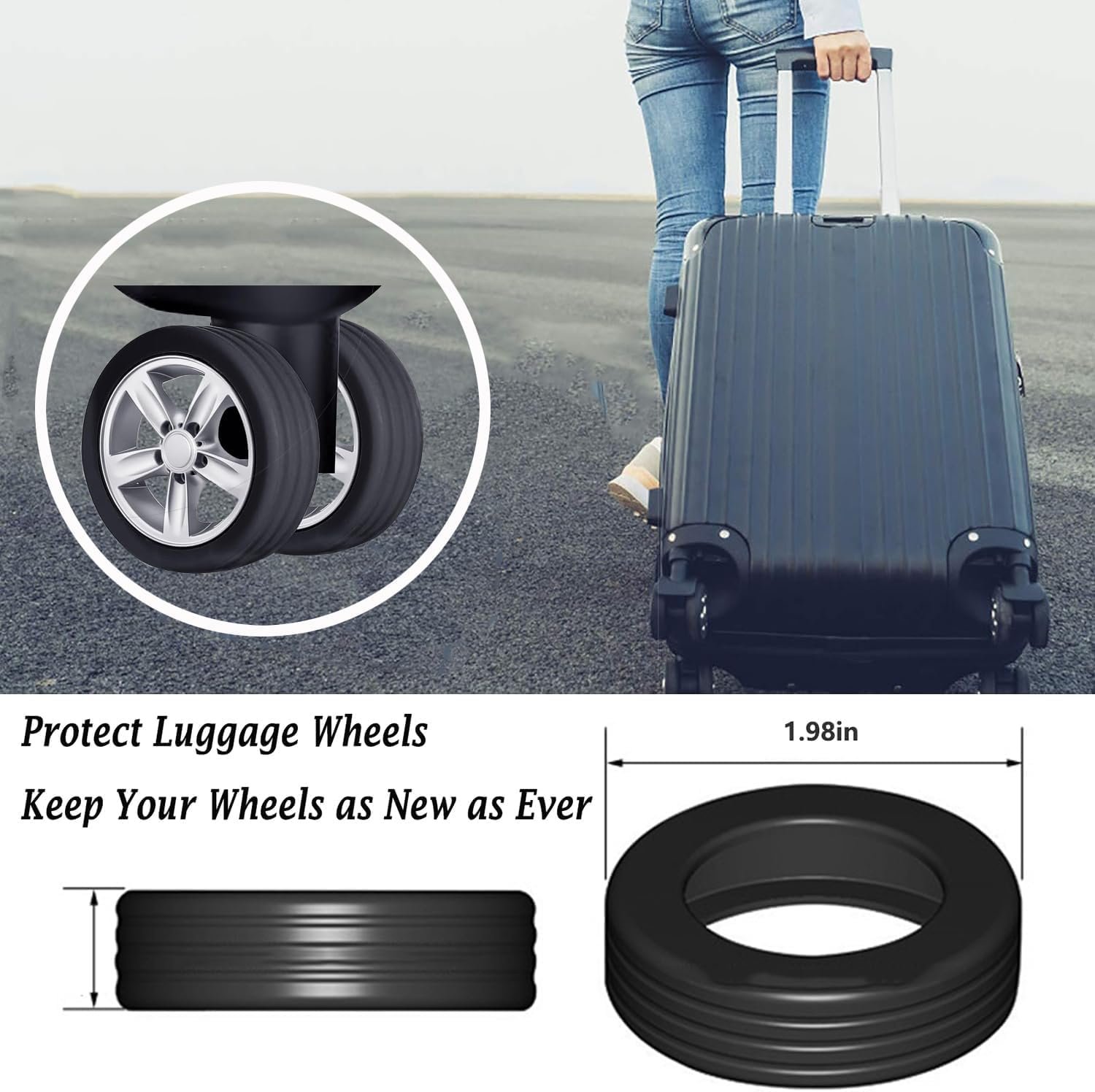 Luggage wheel cover is designed to shield the wheels of travel bag from scratches, dirt, scuffs, and the perils of sharp objects. By minimizing friction and dampening vibrations, it ensures your suitcase wheels endure the rigors of travel without damage.