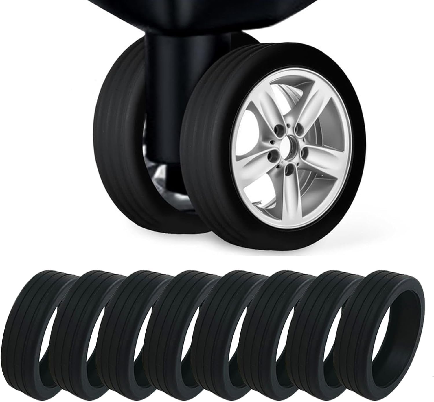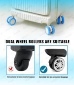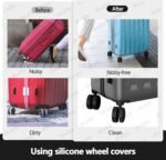 Our silicone travel luggage wheel covers are soft, stretchable, and easy to clean. They reduce noise, vibration, and impact while providing enhanced grip for all-weather use, ensuring a peaceful travel experience. Our silicone luggage wheel covers are tailored for most 8-spinner wheel suitcase sets. Before purchasing, please ensure your suitcase features double wheels with sizes ranging from 2 to 3 inches. Verify that the distance between the wheels, axles, and fenders aligns with the dimensions depicted in our main images above. Our trolley wheel covers showcase exceptional craftsmanship, offering enhanced functionality and longevity. Upgraded with increased thickness, they ensure a perfect, snug fit for your wheels. These non-sticky suitcase wheel cover are effortless to install and remove, allowing for multiple uses with ease. Cleaning is straightforward too, requiring only water to keep them looking fresh.