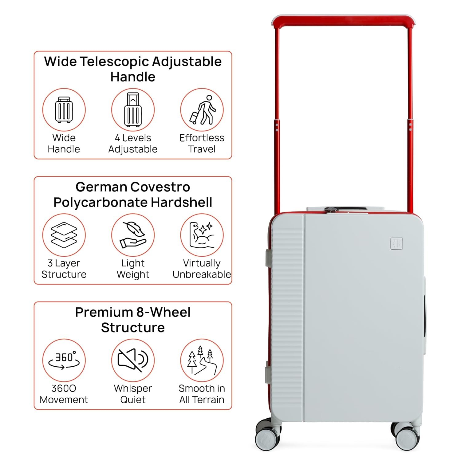 Our whisper-quiet wheels, featuring an 8-wheel structure, are premium 360° rollers, ensuring an impeccably smooth ride on any terrain. Travel in tranquility and comfort with our wheel design.