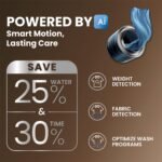 Powered by AI: Neural network-based algorithms automatically detect fabric type and load weight, optimizing water levels, wash actions, and cycle duration. This ensures better cleaning while reducing wear and tear on fabrics