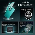 BUILT TO LAST: The NOTE 50x 5G+ is MIL-STD-810H certified and IP64 rated, offering solid protection against drops, dust, and water splashes. Perfect for those who live life on the move and want a phone that keeps up.