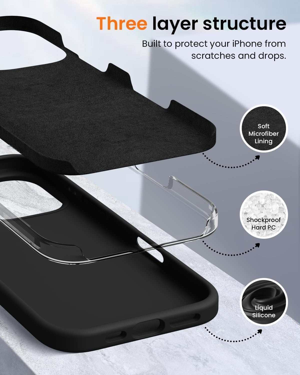 Our Liquid Silicone Case offers a premium soft-touch finish that feels amazing in hand while keeping your phone safe from everyday bumps and drops. The 3-layer construction — Liquid Silicone, Hard PC Shell, and Soft Microfiber Lining — ensures unbeatable durability and comfort. Built to last. Made to impress.