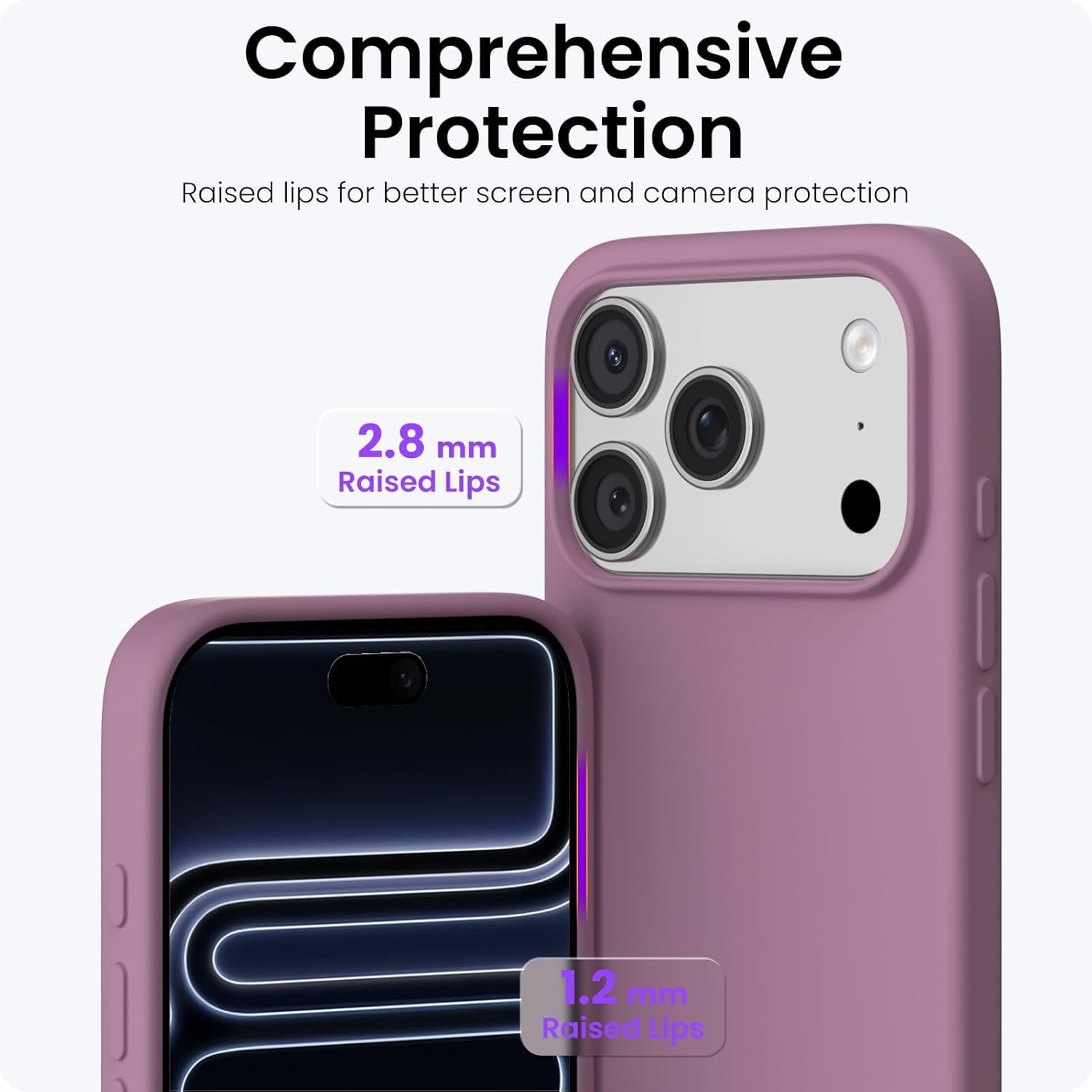 Compatibility: Specifically designed for iPhone 17 Pro. Available in multiple color options. Supports wireless chargingFull-Body Protection: Features 1.2mm raised edges around the camera and screen to safeguard against bumps and impacts—offering comprehensive 360° protection.Secure Grip & Easy Maintenance: Made with premium liquid silicone for a sleek yet non-slip grip. The back cover is easy to clean with a damp cloth or tissue.Enhanced Durability: Constructed with upgraded 2.0mm thick liquid silicone (compared to standard 1.5mm). Smooth surface resists fingerprints, scratches, and provides reliable drop protectionPremium Case cover for Apple smartphone