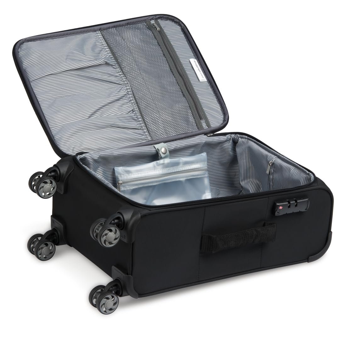 Debonair, comes with contrast color dual caster 4 spinner wheels or 8 wheels, making it easier to maneuver offering ideal traction for smooth roll over different surfaces, multi-directional silent wheels rotate 360 degrees for easy maneuverability in all directions.