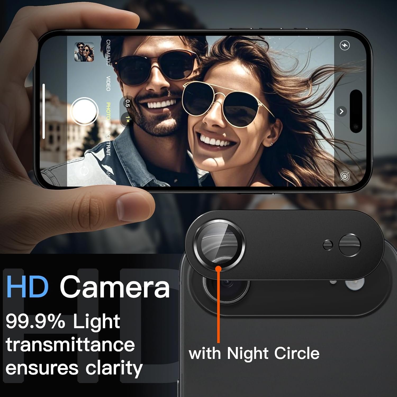[Full Coverage Protection] The integrated design with a matte aluminum alloy frame and built-in tempered glass lens covers provide reliable protection against daily scratches and abrasions