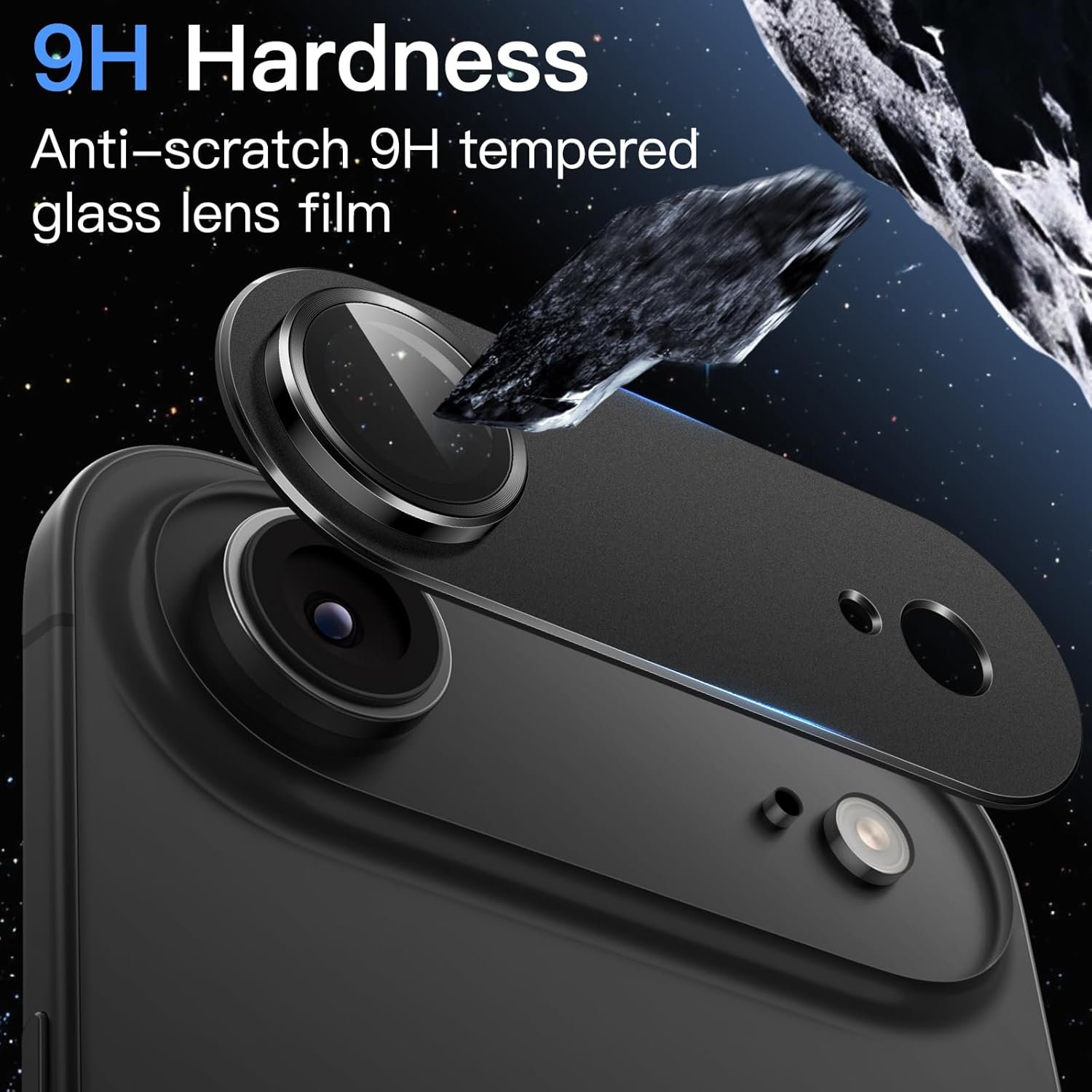 JETech Camera Lens Protector for iPhone 17 Air, Full Coverage 9H Tempered Glass Ring Cover, Matte Metal Plate, Case Friendly, 1-Pack, 6.5-Inch Display (Black)