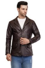 Stay stylish and warm this winter with this chic leather jacket for men. Crafted from premium-quality leather, this jacket exudes a rugged yet sophisticated look that will elevate any outfit. The rich brown hue adds a touch of timeless elegance, while the sleek design ensures a comfortable and flattering fit. With its durable construction and attention to detail, this jacket is built to last season after season. Whether you’re dressing up for a night out or layering for a casual day, this versatile piece is a must-have addition to your wardrobe. Pair it with jeans and a crisp shirt for a polished ensemble, or layer it over a cosy sweater for a laid-back vibe. With its classic style and exceptional craftsmanship, this leather jacket is an investment piece that will keep you looking sharp and feeling confident all winter long.