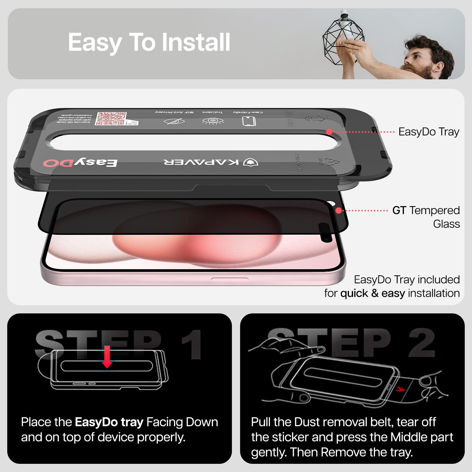 EASY INSTALL KIT FOR PERFECT, BUBBLE-FREE ALIGNMENT :The newest GLaS HD Easy DO comes with an innovative tray designed to eliminate the time wasted to achieve the greatest alignment. Simply place the tray over the phone, press the center and watch the glass adhere in place.