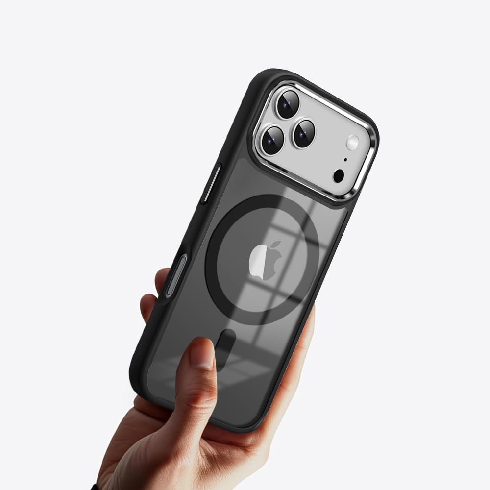 KARWAN®️ Translucent Hybrid Case with Metal Ring Phone case Cover for iPhone 17 Pro Max |Compatible with N52 Strong Magnets Mag| Wireless Compatible (6.9 inch) (Black)