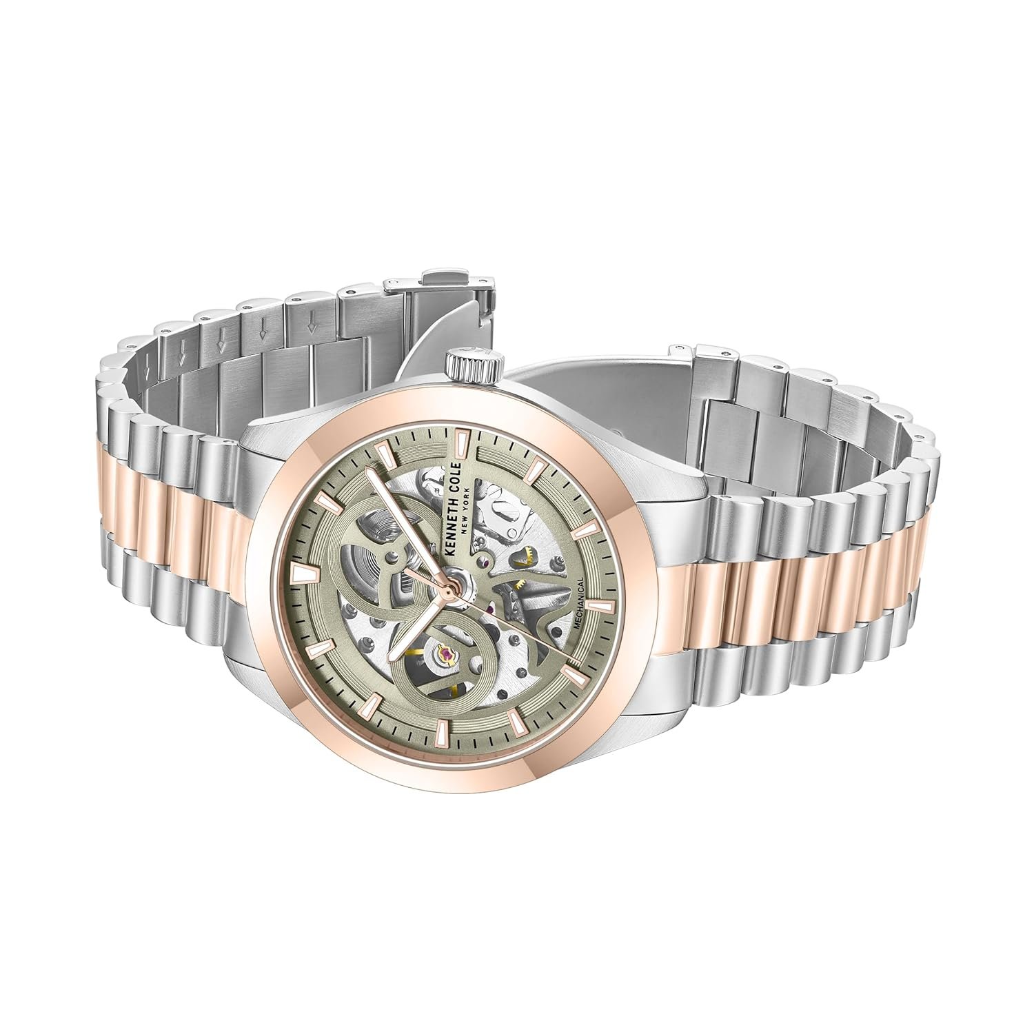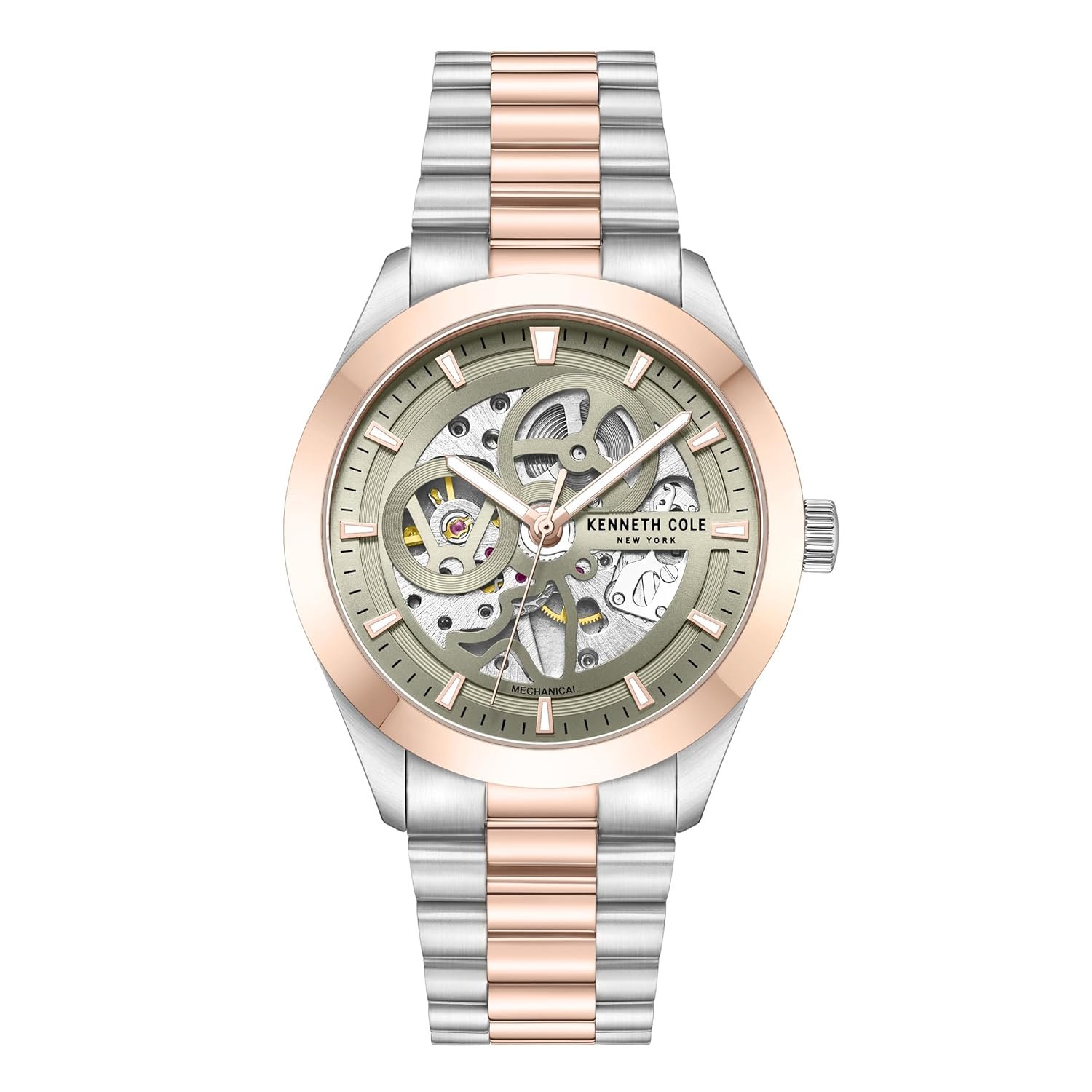 Kenneth Cole Mechanical Green Dial Two Toned Silver & Rose Gold Stainless Steel Strap Watch for Men – KCWGL0046702MN