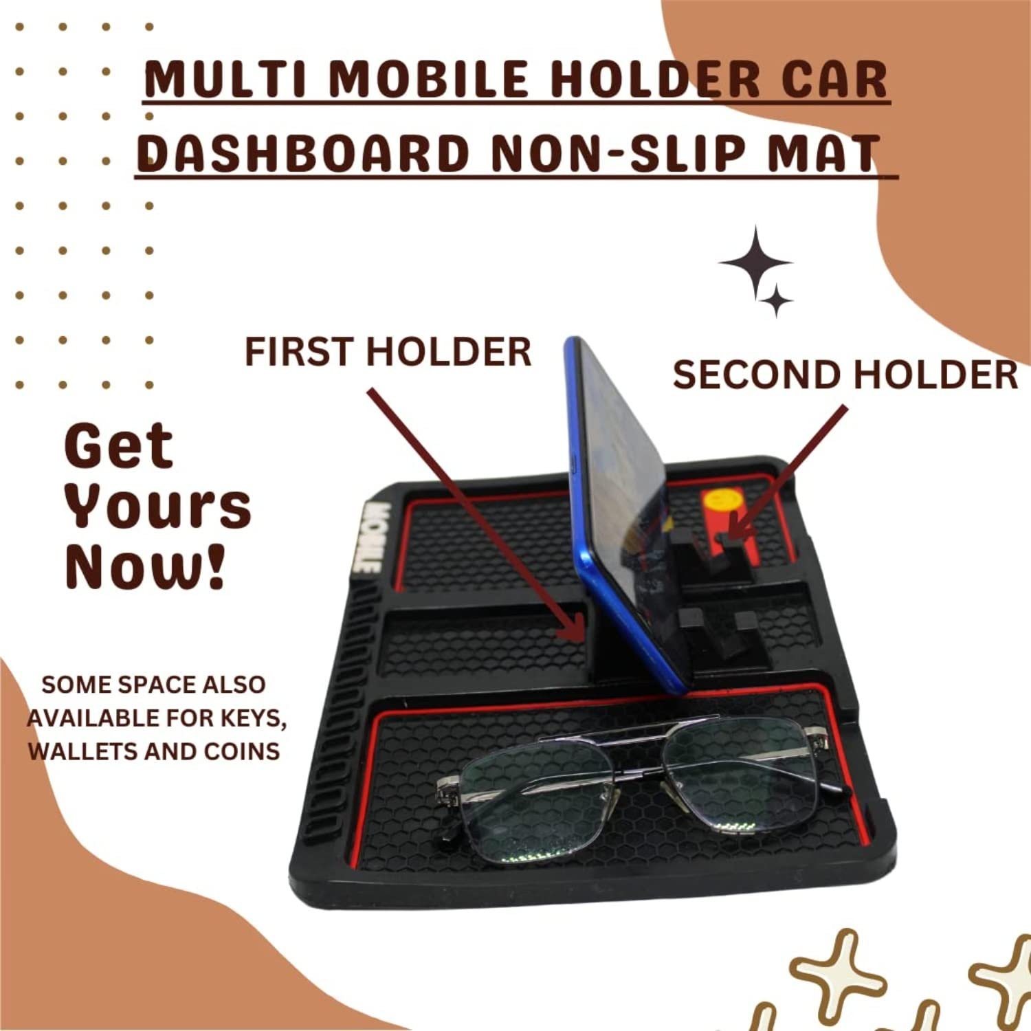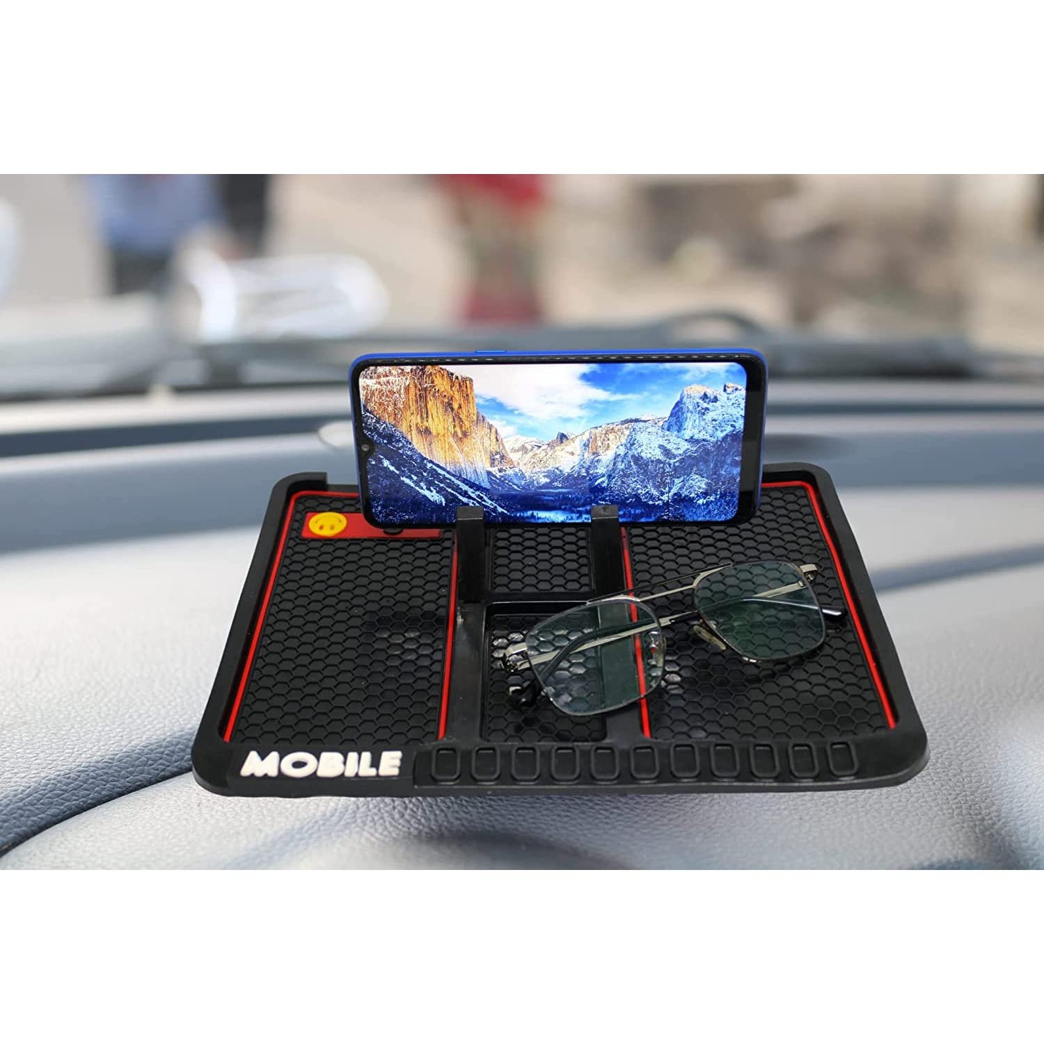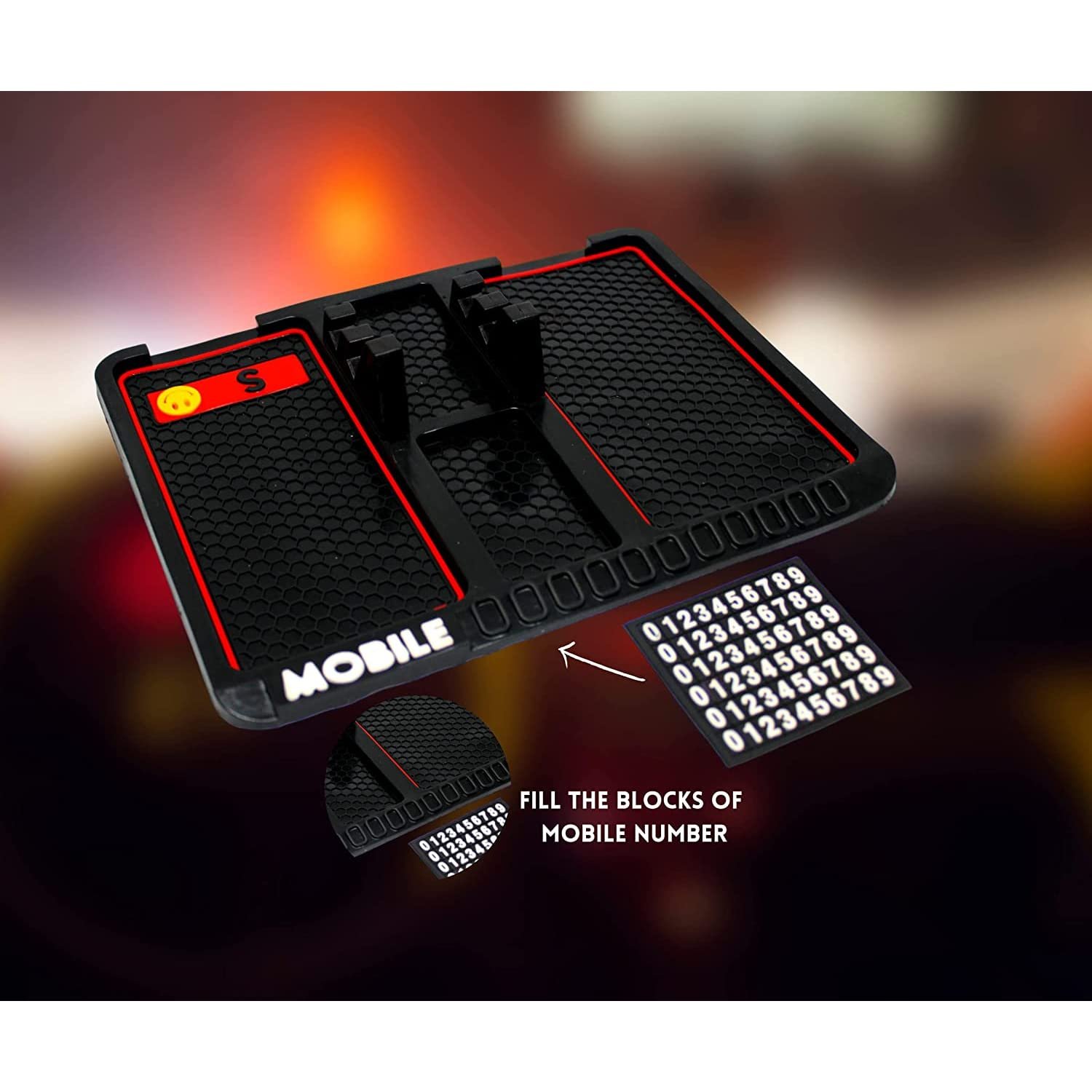 Kingsway Big Size Non-Slip Car Mobile Holder Dasboard Mat with Car Parking Mobile Number Display Pad, Anti-Skid & Anti-Slip Universal Design Use for All Cars, Silicone, 1 Piece