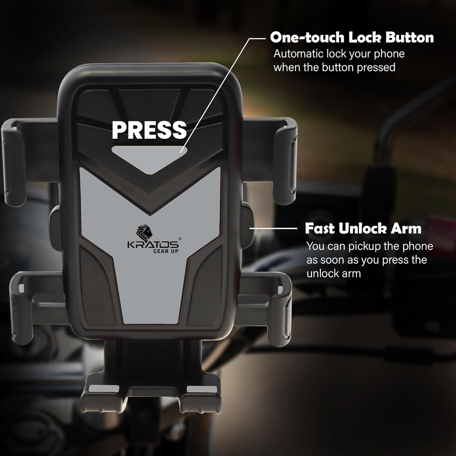 [ One Click Locking Mechanism ] : Experience effortless convenience with one-hand operation. Easily adjust and securely lock your phone in place while riding, making this mobile holder for bikes perfect for a smooth, hassle-free journey