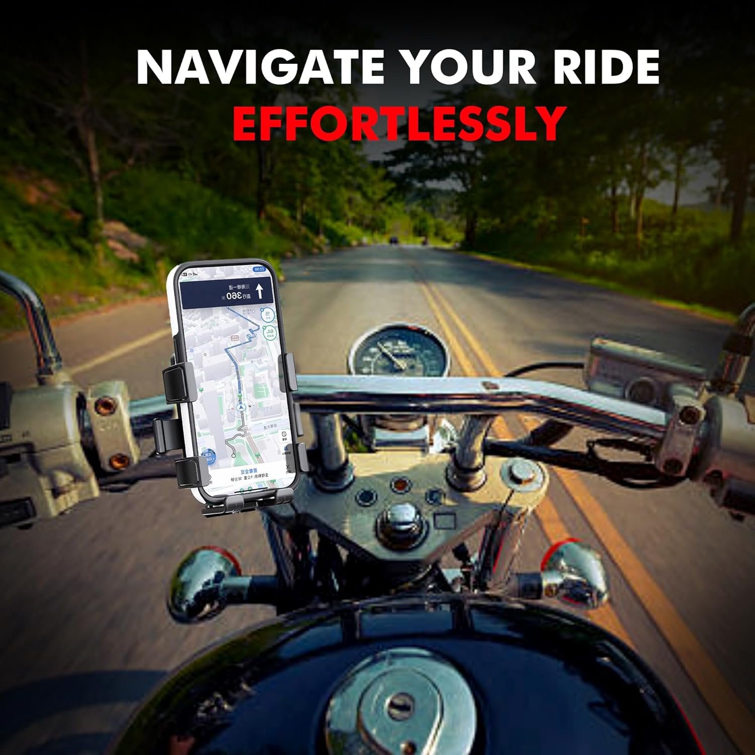 [Stable on Bumpy Roads]: Unlike other bike holders with loose hole-based adjustments that can cause instability, our phone mount features a secure grip design that firmly locks onto the handlebar, keeping your phone steady even on rough roads