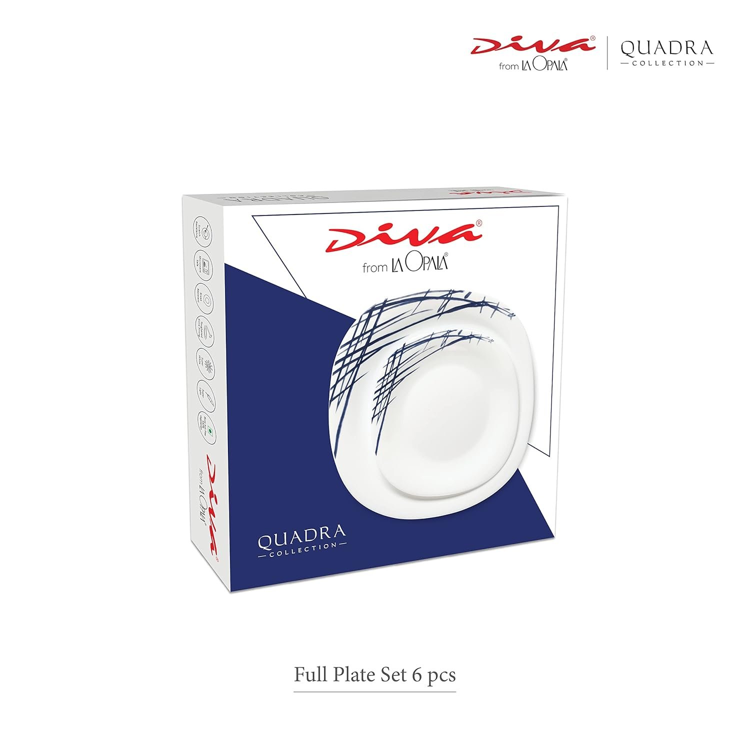 La Opala Diva Quadra Collection Opal Glass Crockery | Full Plate Set of 6 Midnight Black | Square Dinner Plate for Dining & Gifting | Microwave Safe | 100% Vegetarian | Extra Strong | Light & White