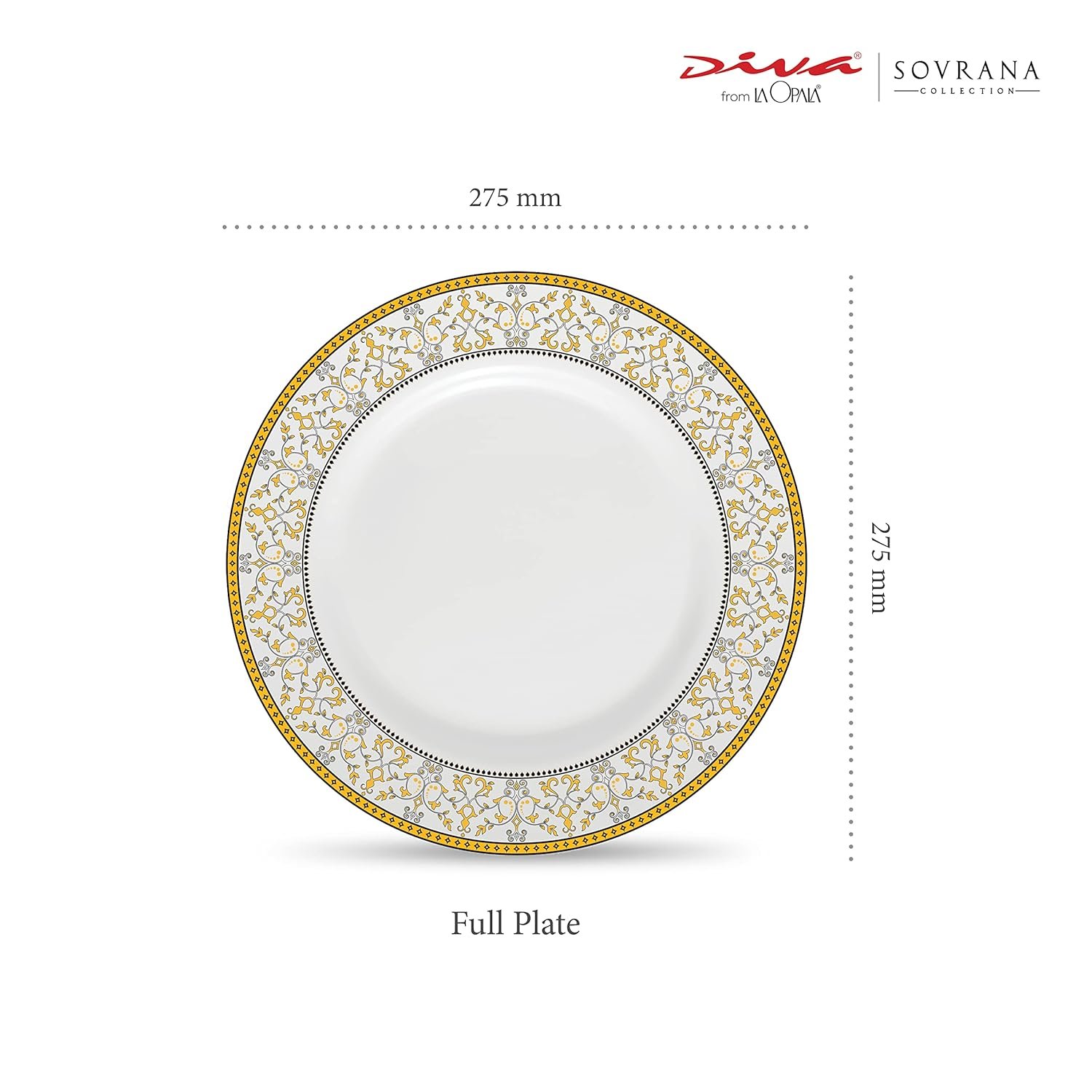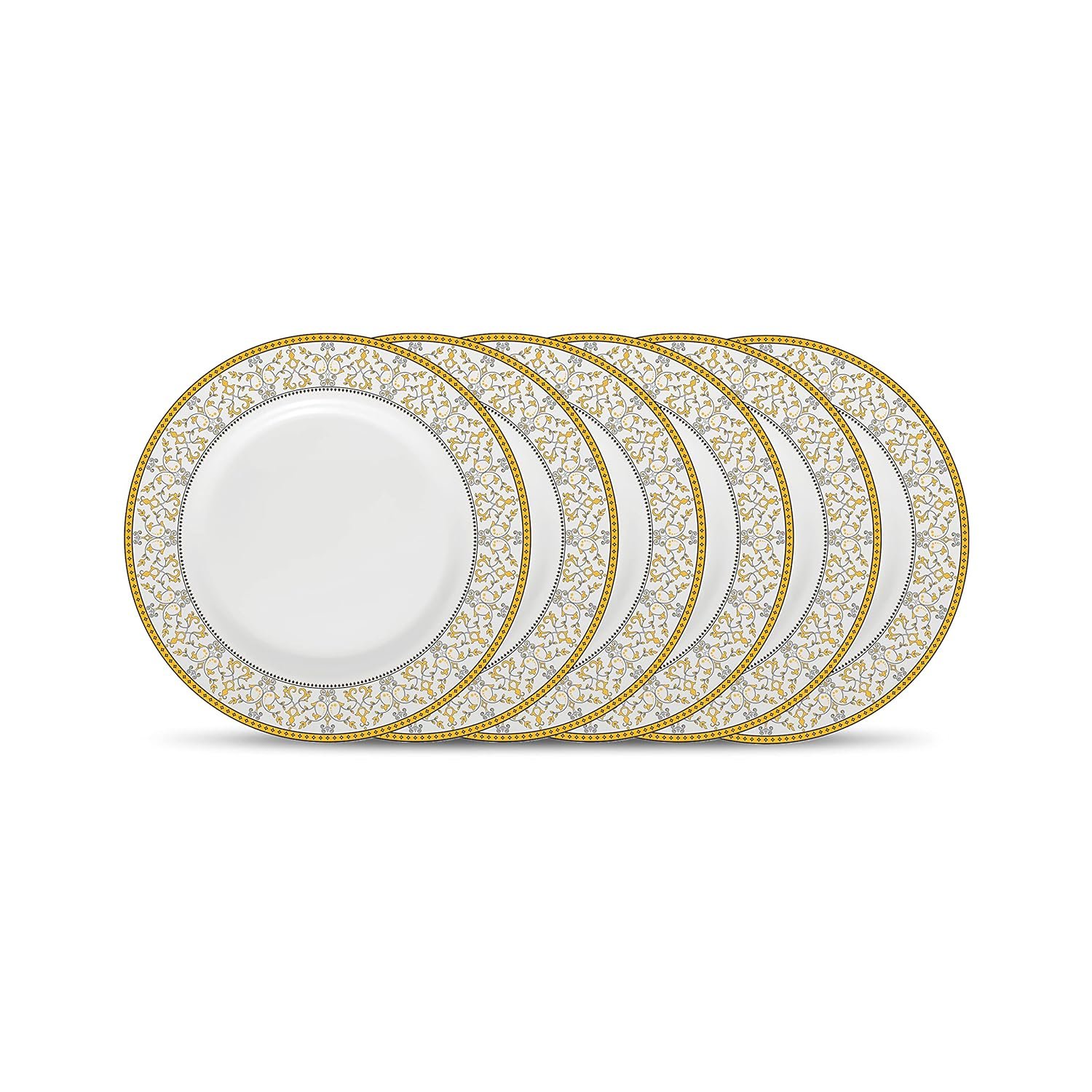 La Opala Diva Sovrana Collection Opal Glass Crockery | Full Plate Set of 6 Moroccan Gold | Dinner Plate for Dining & Gifting | Microwave Safe | 100% Vegetarian | Extra Strong | Super Light & White