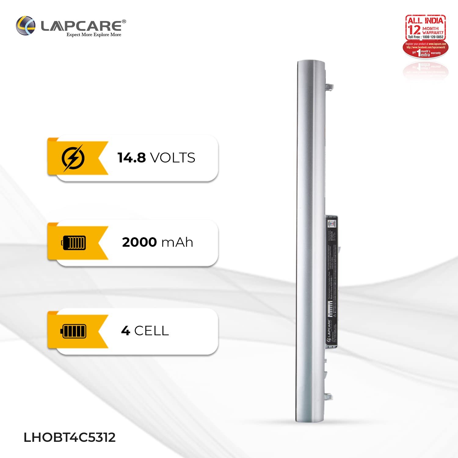 Lapcare LHOBT4C5312 battery is compatible with HP Pavilion TouchSmart 14, HP Pavilion TouchSmart 15 Notebook PC series, HP Pavilion 14 Series, HP Pavilion 15 Series, HP 248 Series, HP 248 G1 Series, HP 340 Series, HP 340 G1 Series, HP 350 Series, HP 350 G1 Series, HP Pavilion 15-B119TX, HP Pavilion 15-B003TX, HP Pavilion 15-B004TX