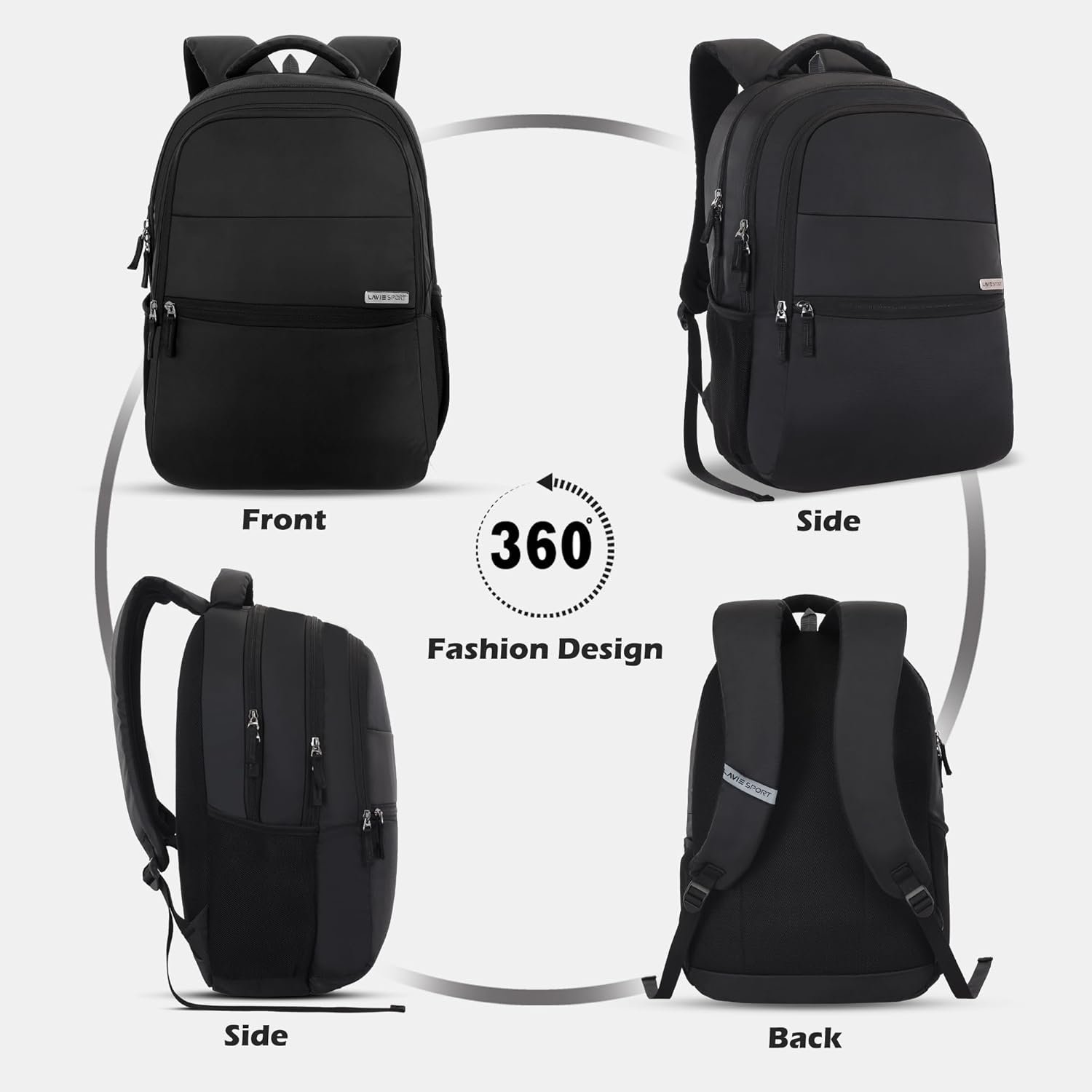 Lavie Sport 47cm Osprey 28 Litres Laptop Backpack For Men & Women | Business Laptop Bag | Upto 15.6″ Notebook/Macbook Compatible (Black)