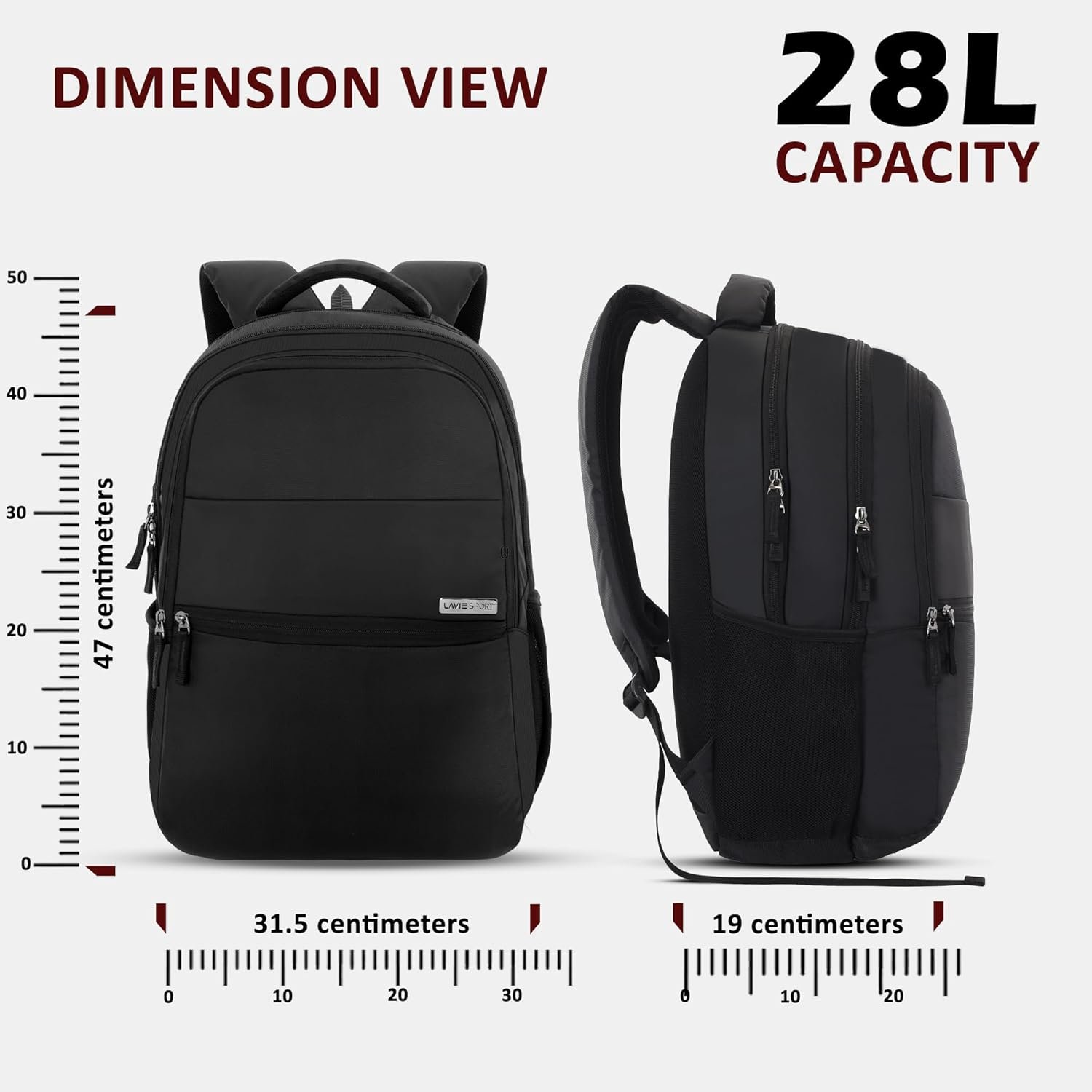 External Dimension: Length – 31.5cm, Width – 19cm, Height – 47cm. Capacity – 28 litres.