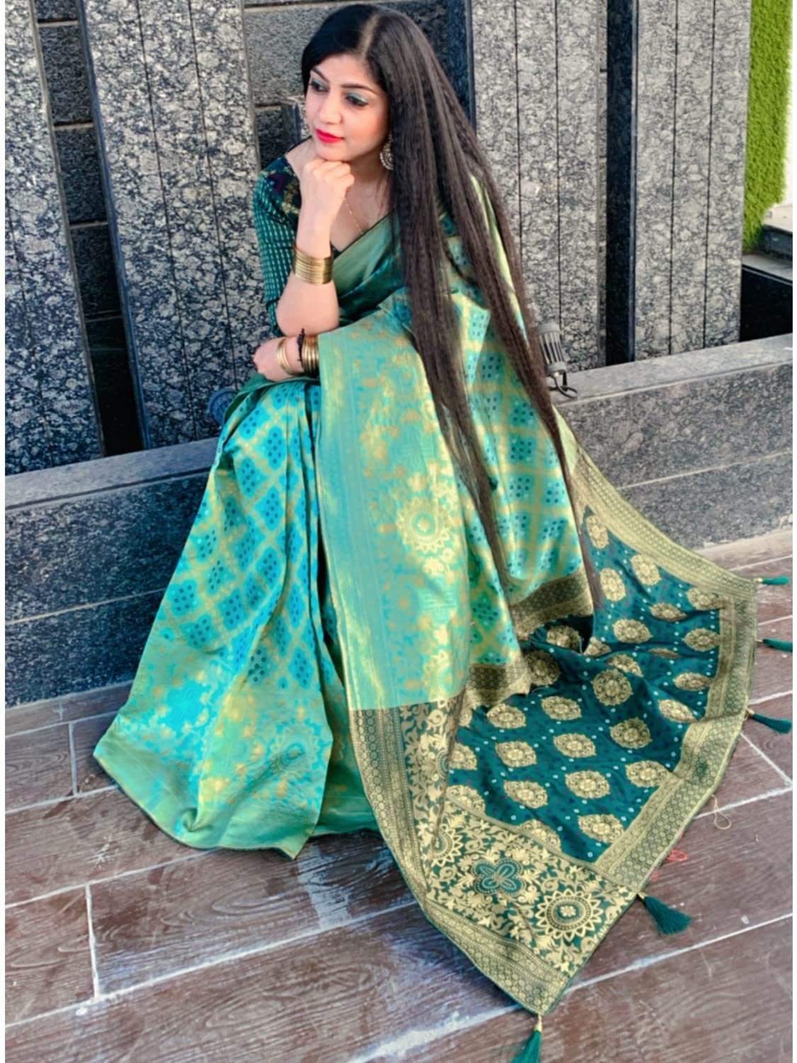 Leeza Store Present Cotton Blend Bandhani – Banarasi Style Golden Zari With Multicolor Thread Work Saree. Saree Has A Great Combination For Bandhani Also Known As Bandhej And Banarasi Style Traditional Style Golden Zari Paisley And Floral Pattern With Tassels And Pipping Border. Pair This Piece With Heels Or Flats For A Graceful Look. Saree Is An Ideal For Evening Wear, Ceremony Wear, Social Gathering, Wedding Reception Wear As Well As Party Wear. This Fancy Saree Comes Along With Matching Fabric Unstitched Blouse Piece That Can Be Tailored As Per Your Style And Comfort. Sari Length: 5.5 Mtr, Blouse Length: 0.8 Mtr, Saree Width: 44. This Fusion Saree Is Best For Your Upcoming Social Gathering, Wedding Reception, Festive Look, And Best To Gift For Mom, Women, Girlfriends, And Relatives.
