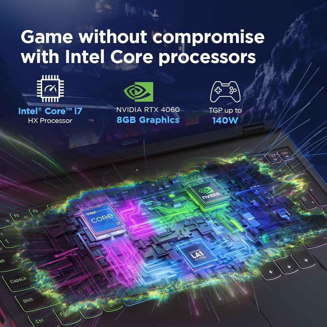 Graphics: NVIDIA GeForce RTX 4060 8GB GDDR6 Dedicated Graphics Boost Clock 2175MHz with max TGP 140W | Free-Sync and G-Sync || Cooling: Legion Coldfront 5.0 with Hybrid Thermals