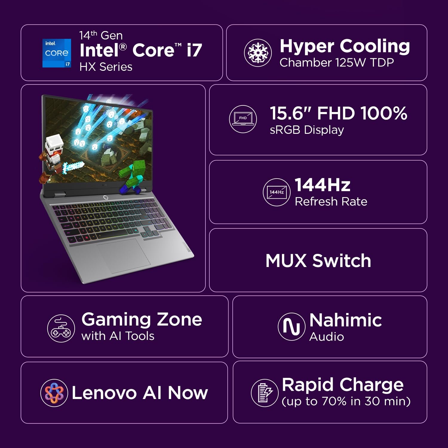 Lenovo LOQ, Intel Core i7 14th Gen 14700HX, NVIDIA RTX 5050 8GB, 16GB RAM, 1TB SSD, 15.6″(39.6cm), 144Hz, Windows 11, Office 2024, Grey, 2.4Kg, 83JE00U6IN, 440 AI Tops, 3 Mon. Game Pass Gaming Laptop