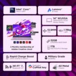[Connectivity & Ports] Wi-Fi 7, 802.11be 2×2 + BT5.4 || Ports:- 1x USB-A (USB 5Gbps / USB 3.2 Gen 1) always on | 2x USB-C (Thunderbolt 4 / USB4 40Gbps), with USB PD 3.1 and DisplayPort 2.1 | 1x HDMI 2.1, up to 4K/60Hz | 1x Headphone / microphone combo jack (3.5mm)