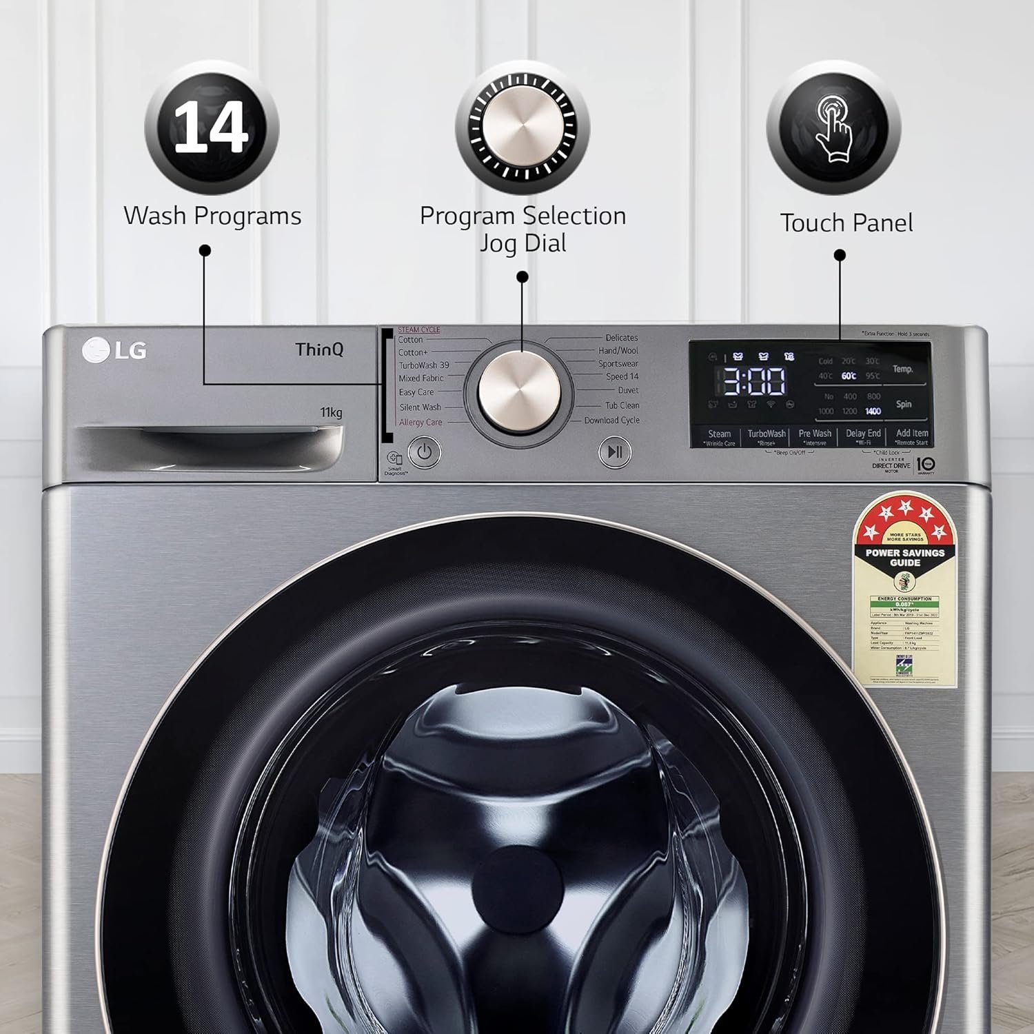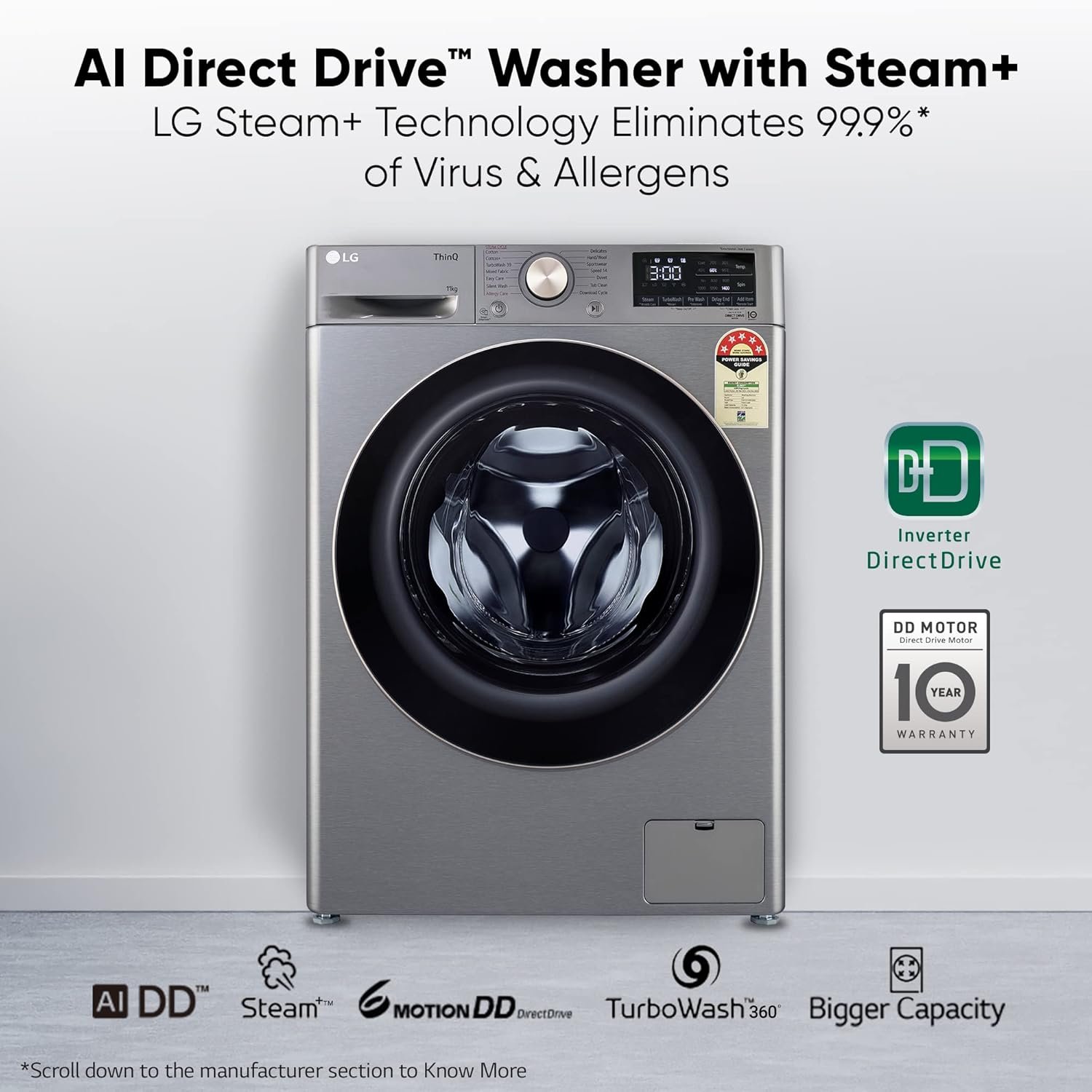 LG 11 Kg, 5 Star, Wi-Fi, AI Direct Drive Technology Fully Automatic Front load Washing Machine (FHP1411Z9P, Intelligent & Convenient Fabric Care, Steam+, TurboWash 360°, 6 Motion DD, Platinum)