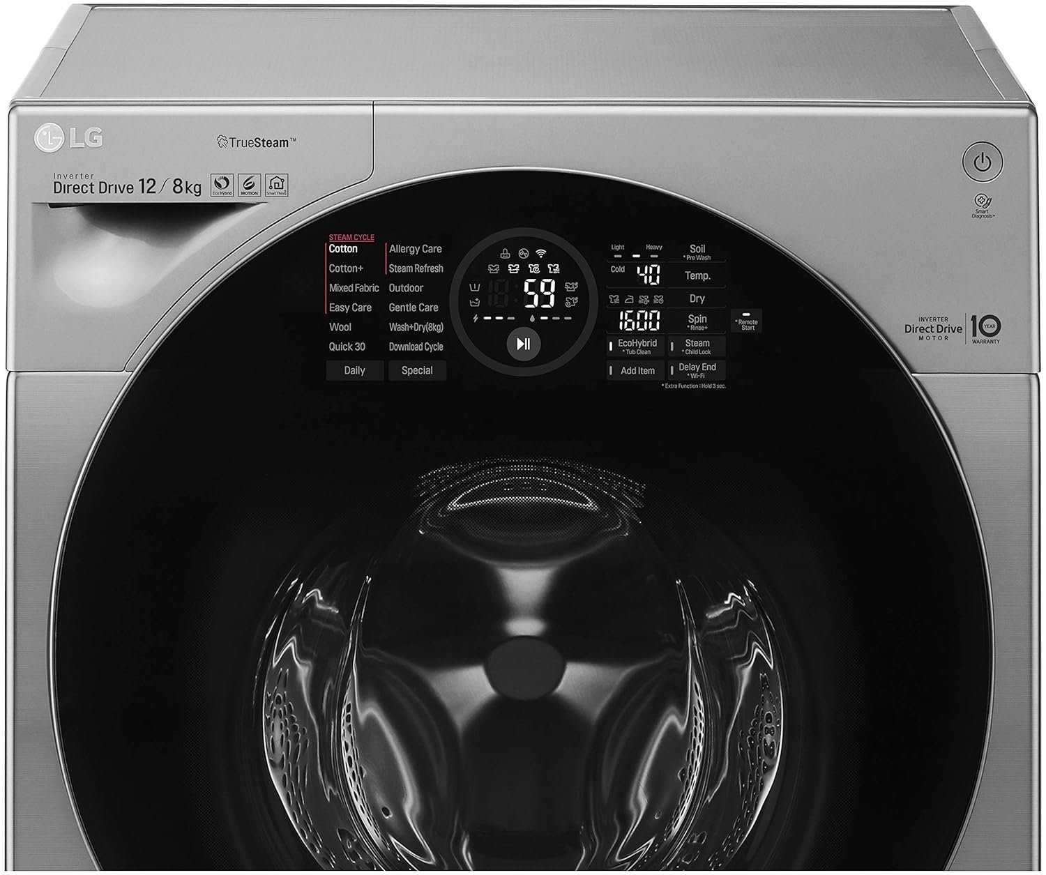 LG 12 kg Inverter Wi-Fi Fully-Automatic Front Loading Washer Dryer (FH6G1BCHK6N, STS, Inbuilt Heater)