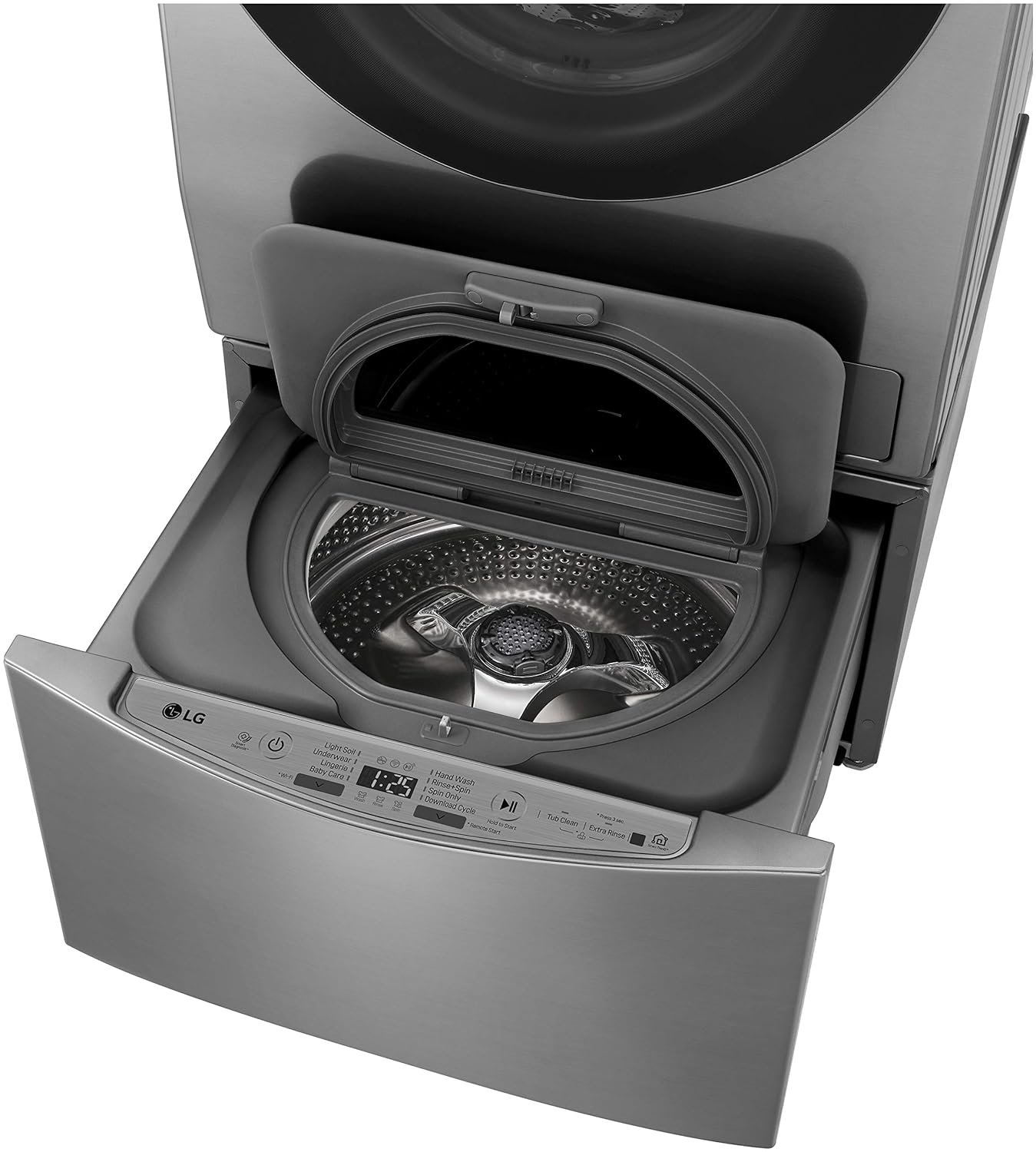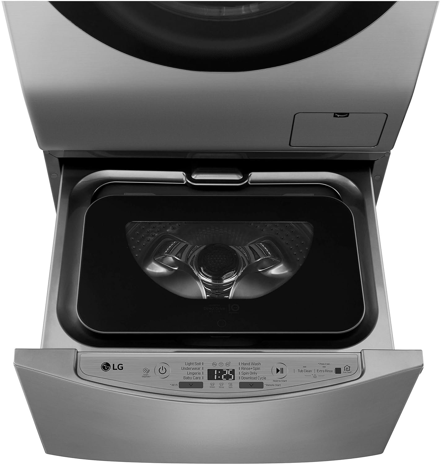 LG Twinwash has its motor attached directly to the drum that reduces the Noise, vibration & the Wear and Tear.
