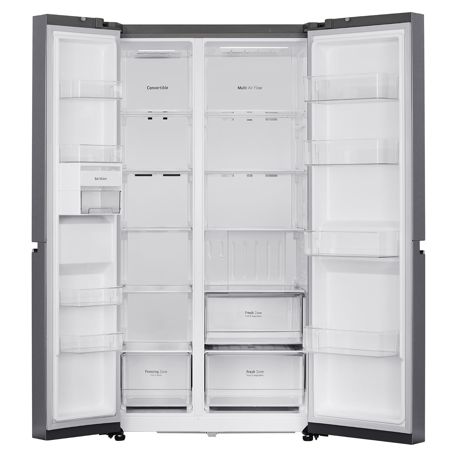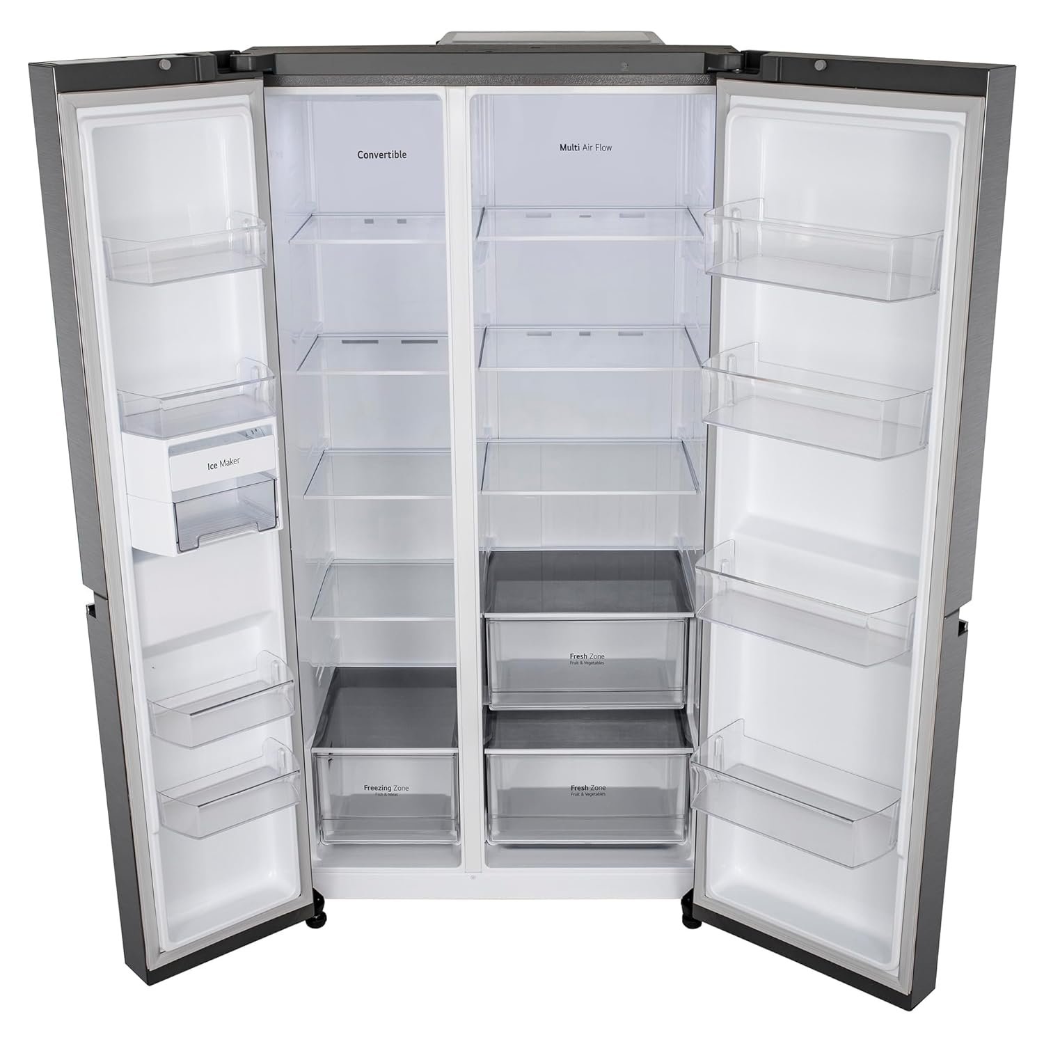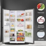 Efficient organize and cool your groceries with spacious Side by Side refrigerator featuring dual compartments for convenient access
