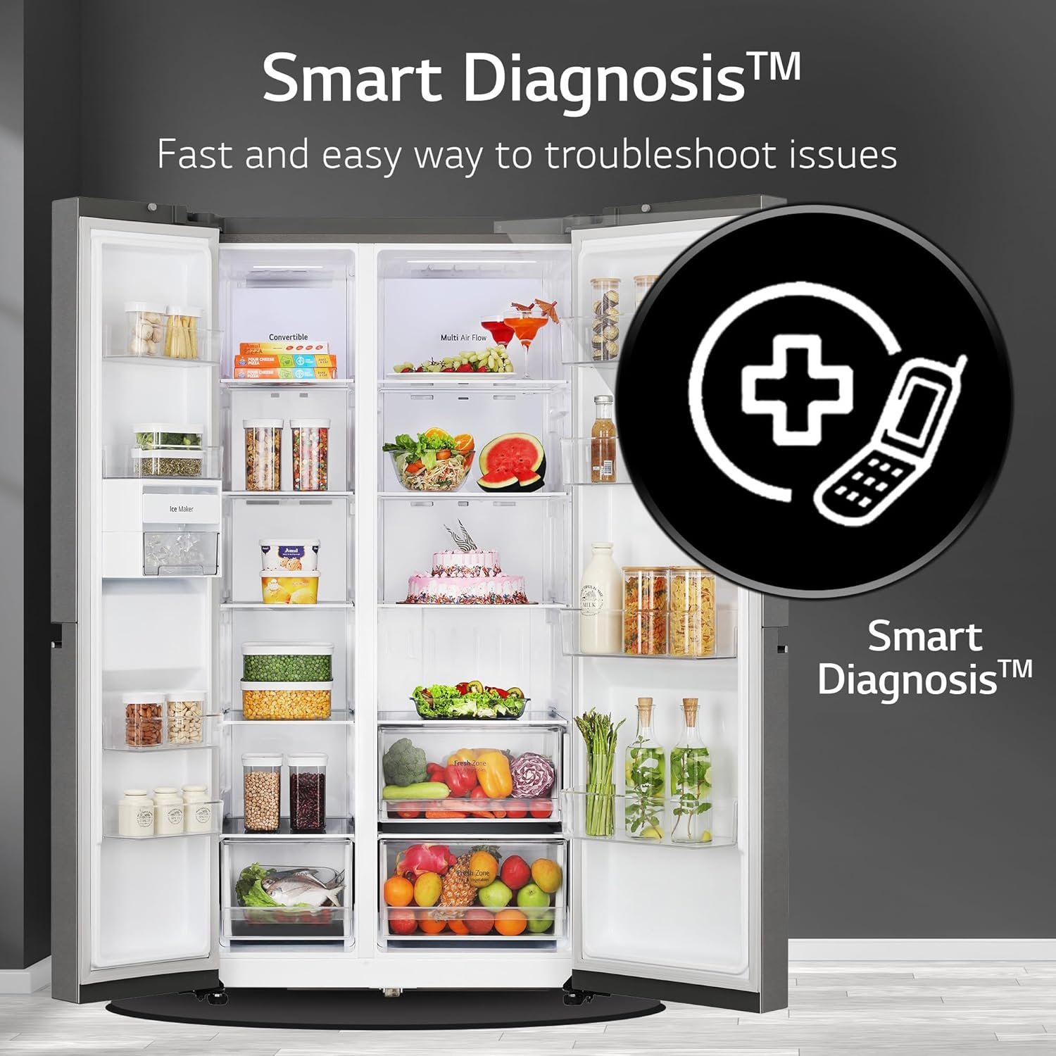 It cools the machine based on the load inside the refrigerator. While conventional compressors always work at high capacity, the LG Smart Inverter Compressor checks the actual demand to supply the optimal level of cooling to save energy and keep food fresh.